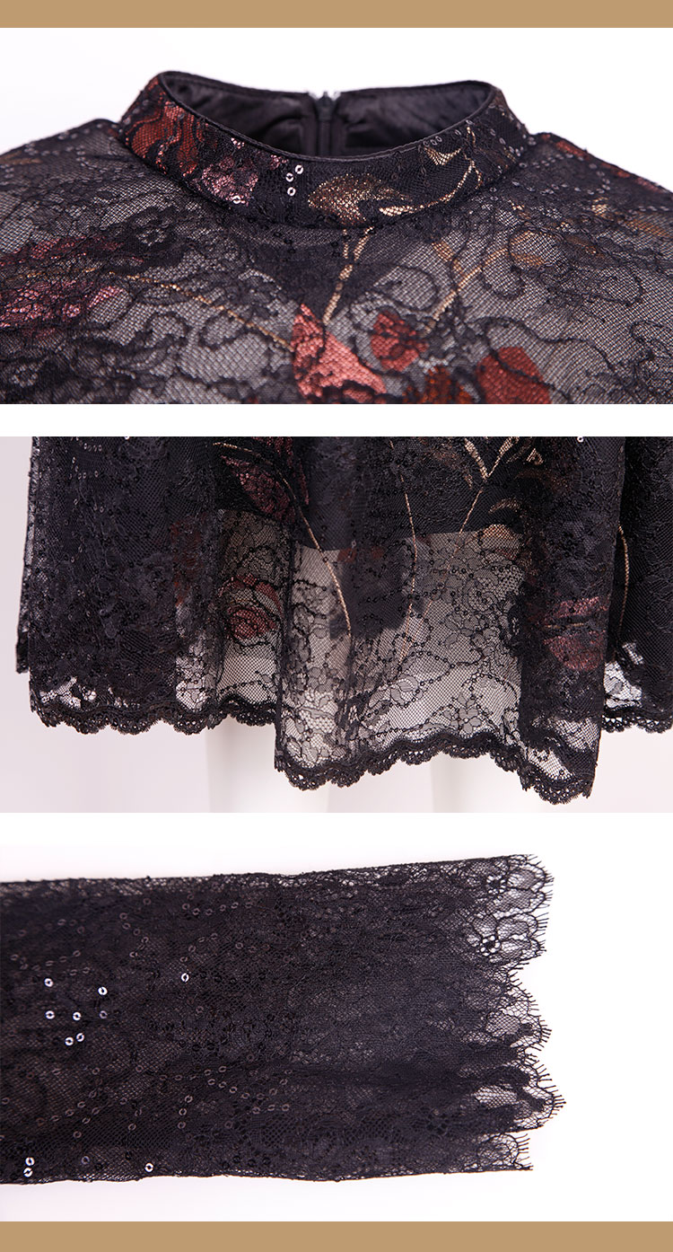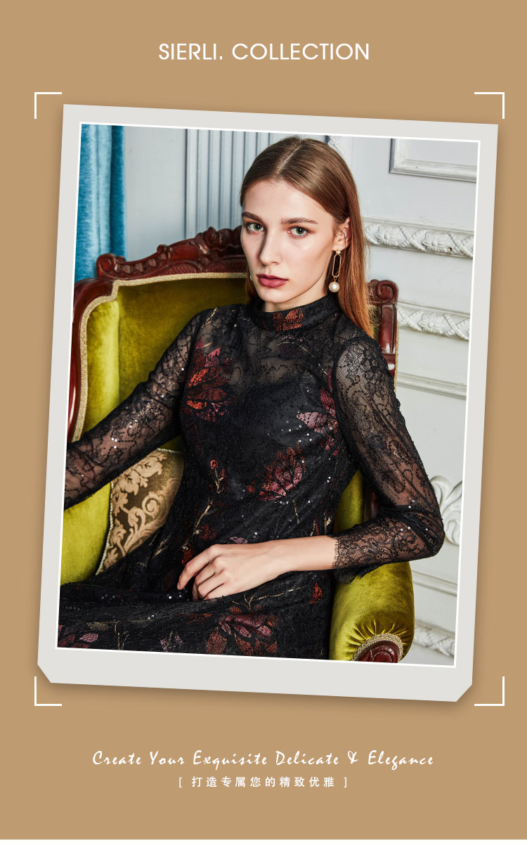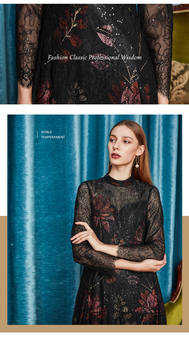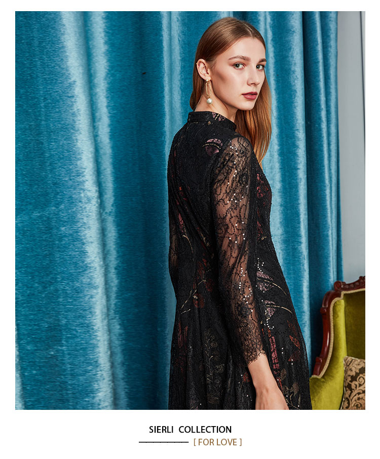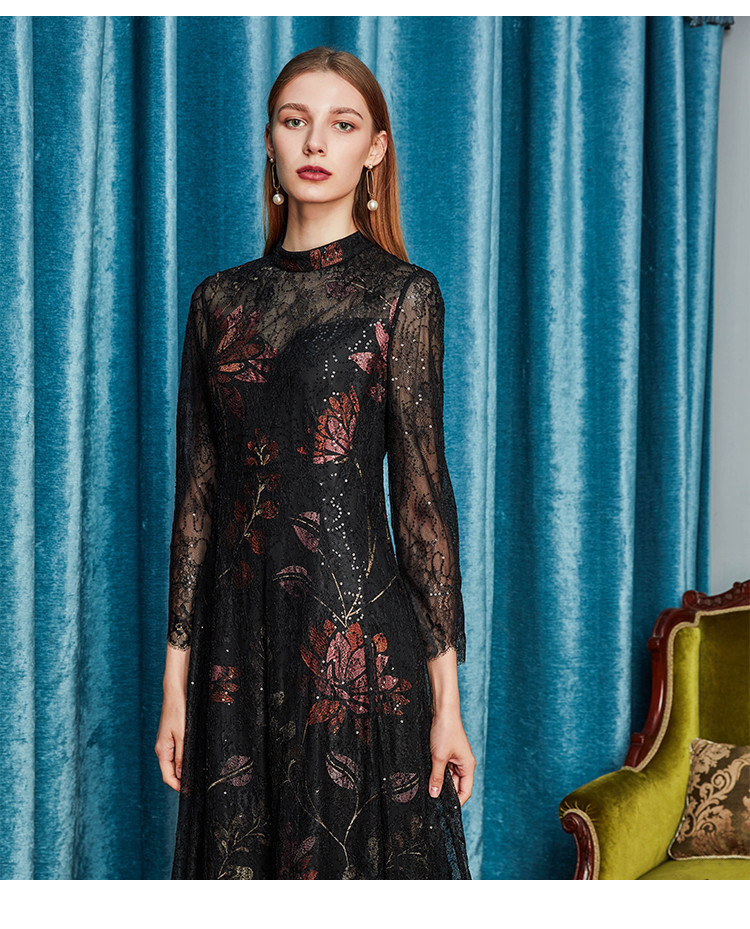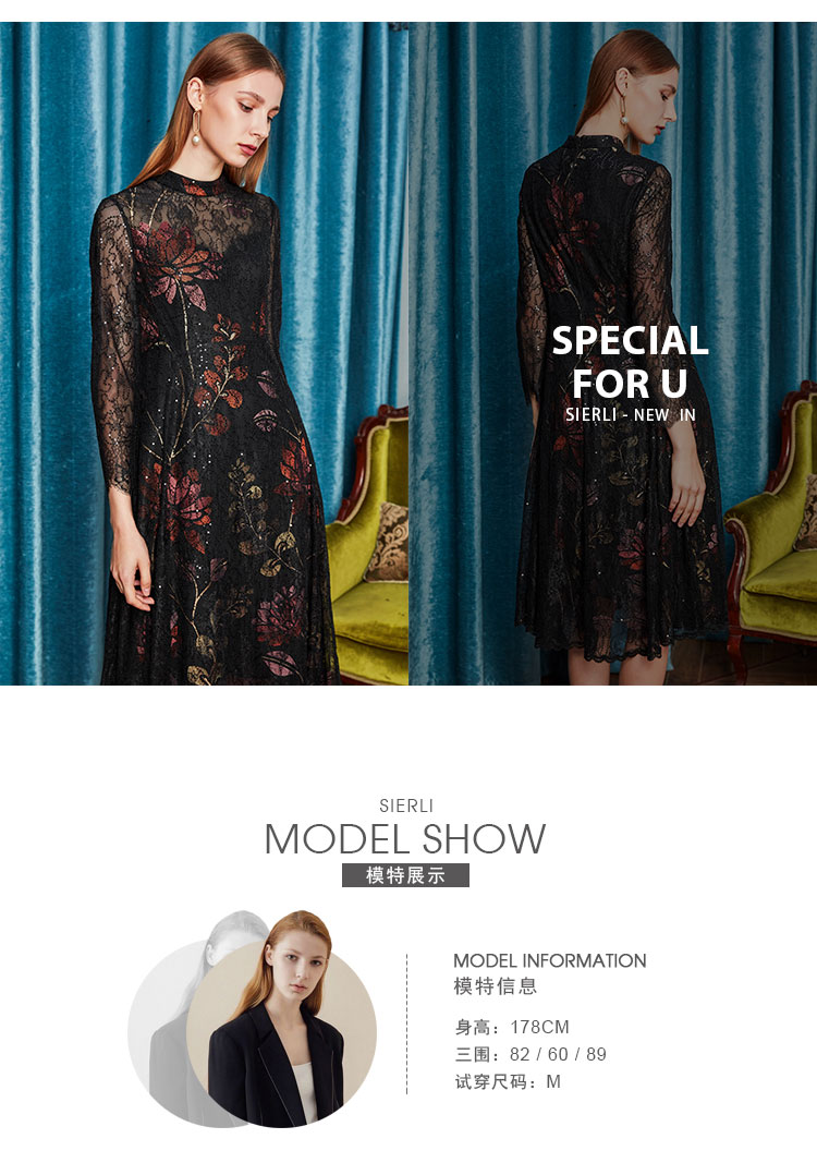 商品名称:夏季圆领浪漫蕾丝长袖合体连衣裙 824031