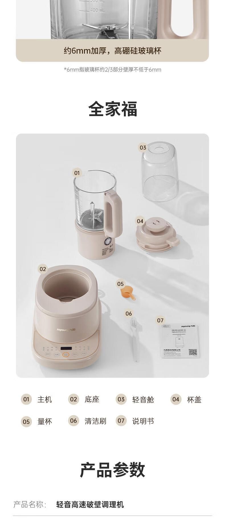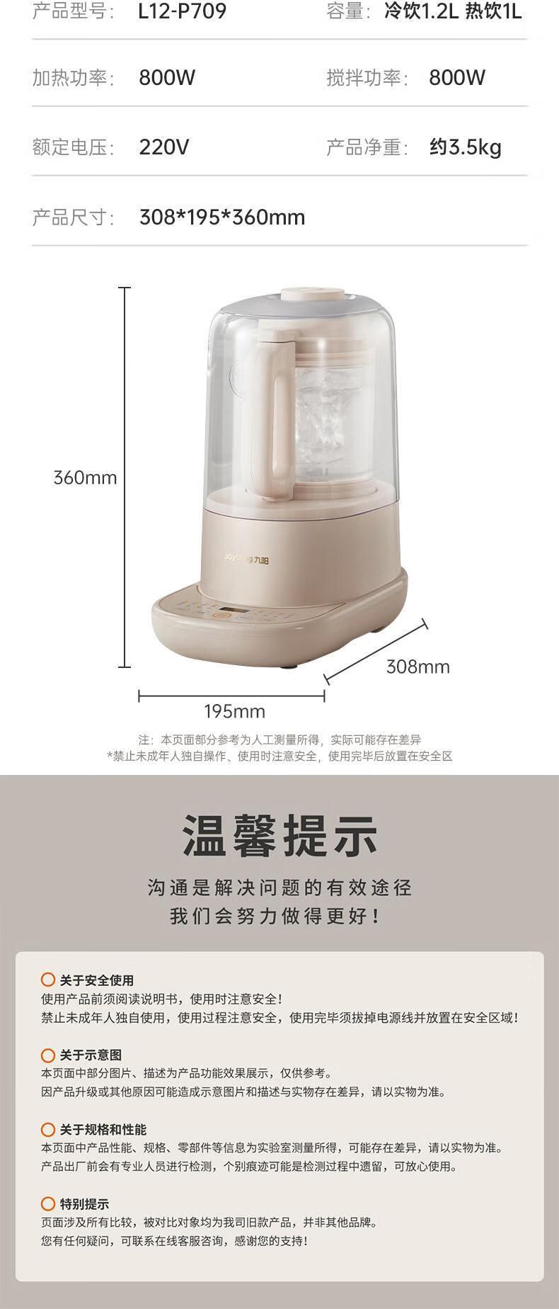 商品名称:九阳隔音罩破壁机L12-P709 免洗榨豆浆多功能自动免过滤料理降噪果汁机1.2L