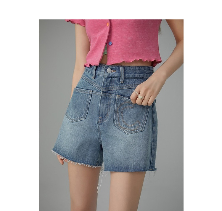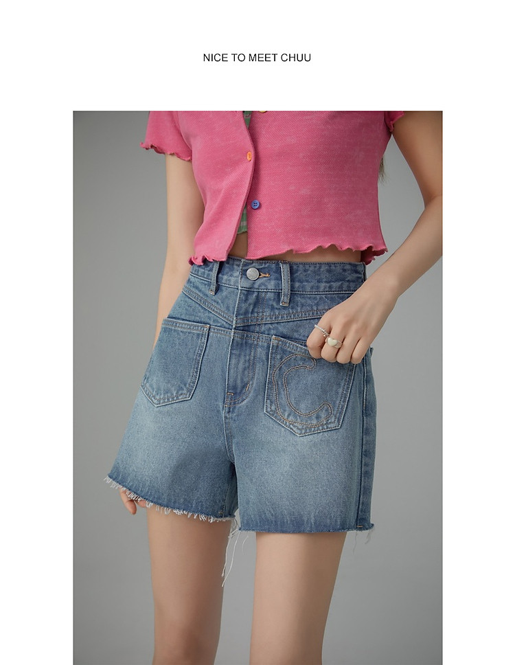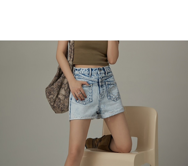 商品名称:多口袋毛边牛仔裤女士2025春夏设计感个性显瘦百搭短裤 617491