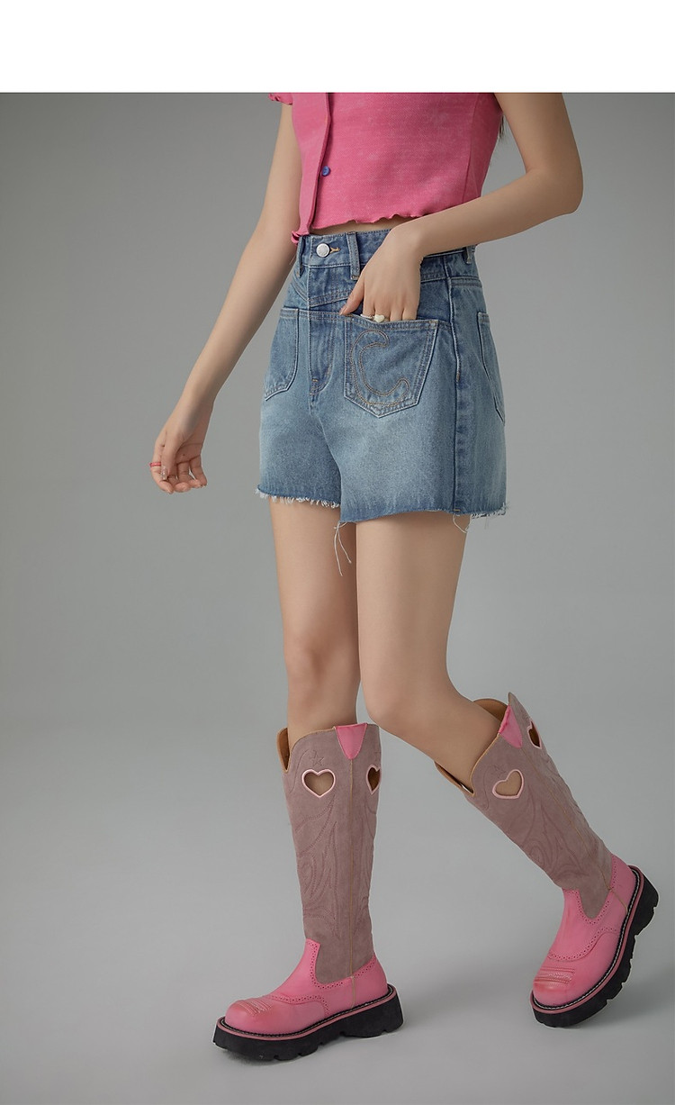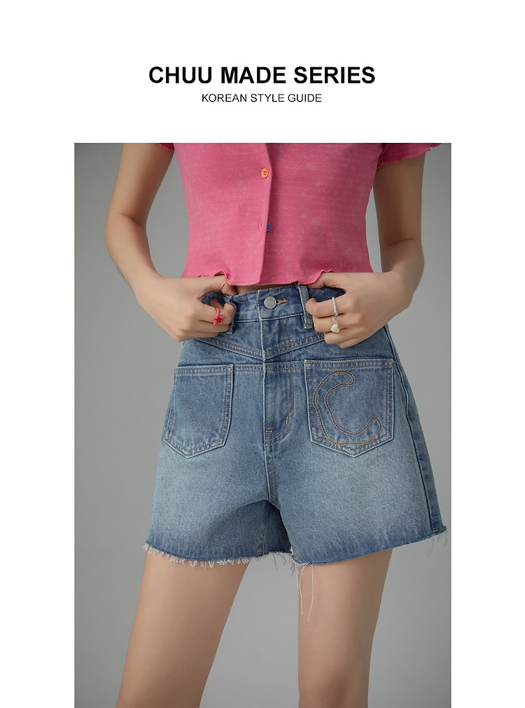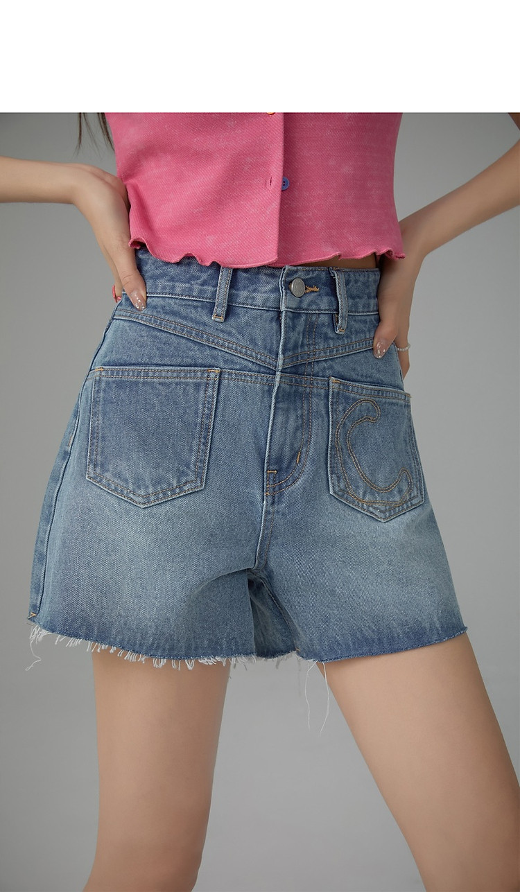 多口袋毛边牛仔裤女士2025春夏设计感个性显瘦百搭短裤 617491