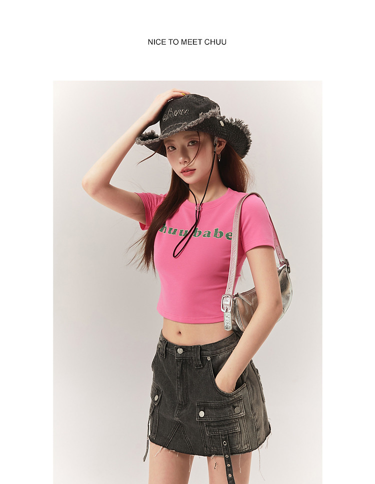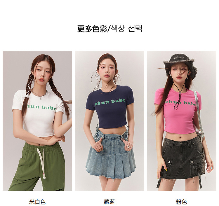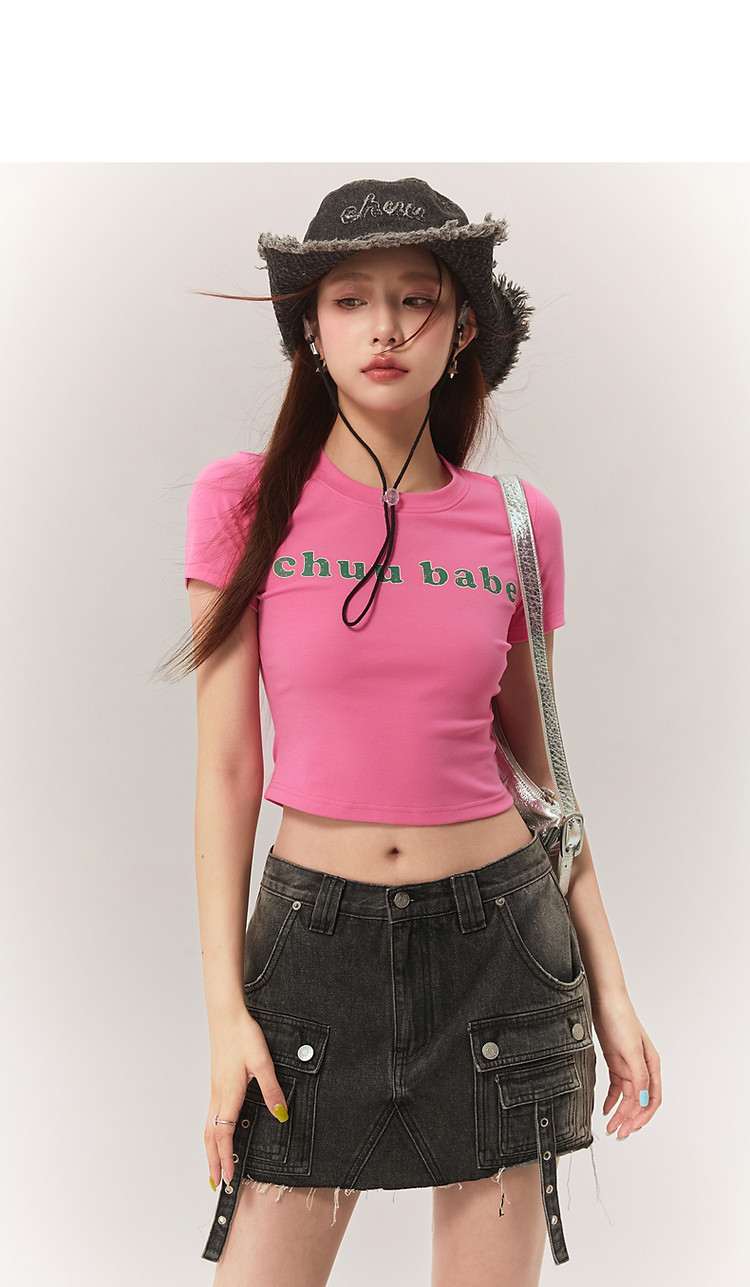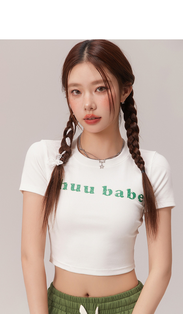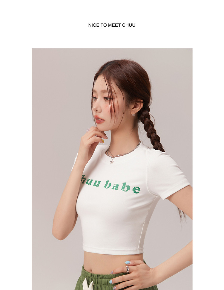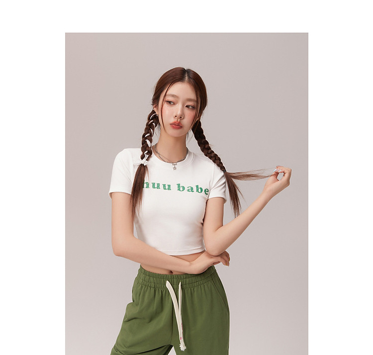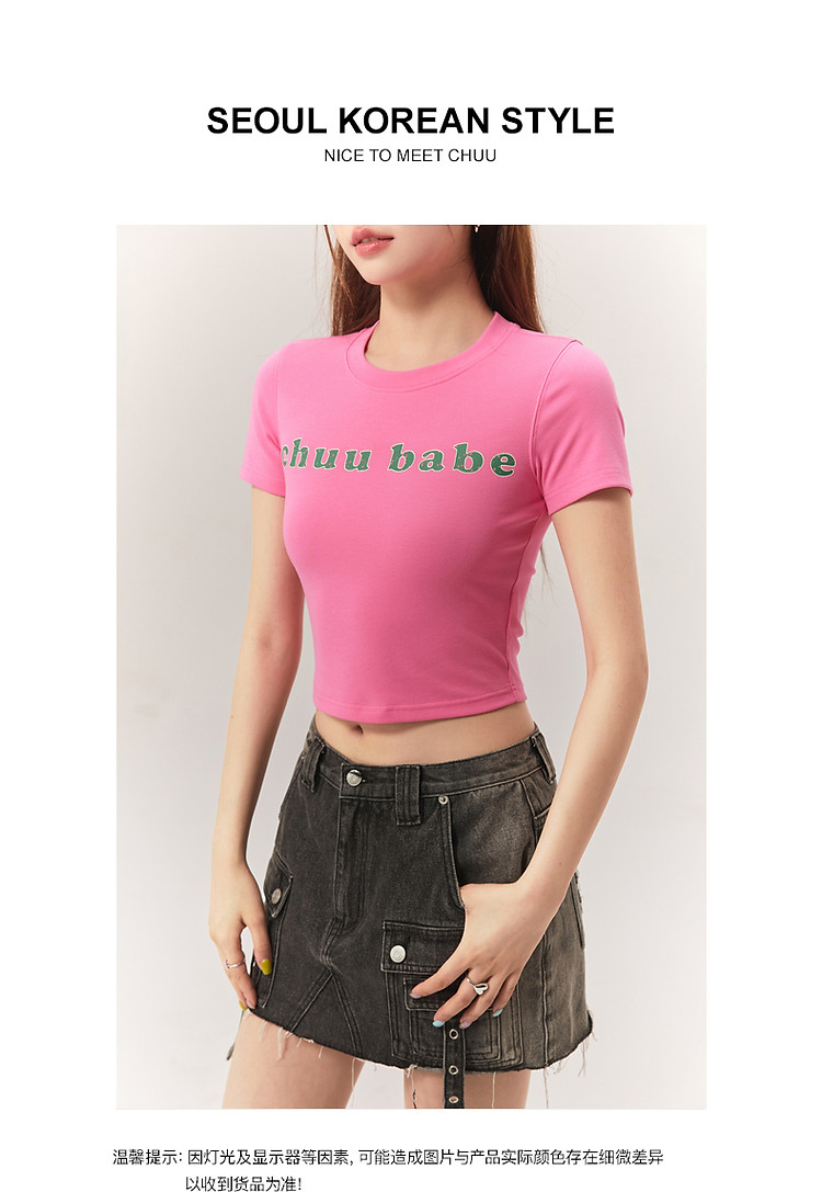 商品名称:字母印花正肩T恤女2025夏辣妹修身基础学院短袖上衣 507347