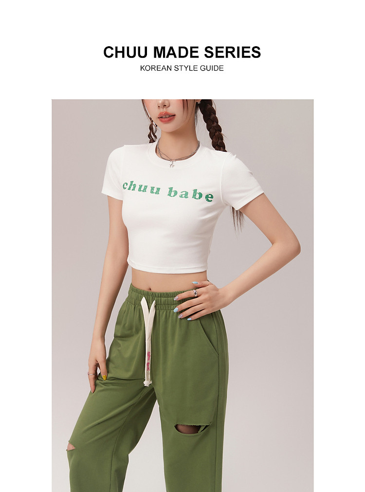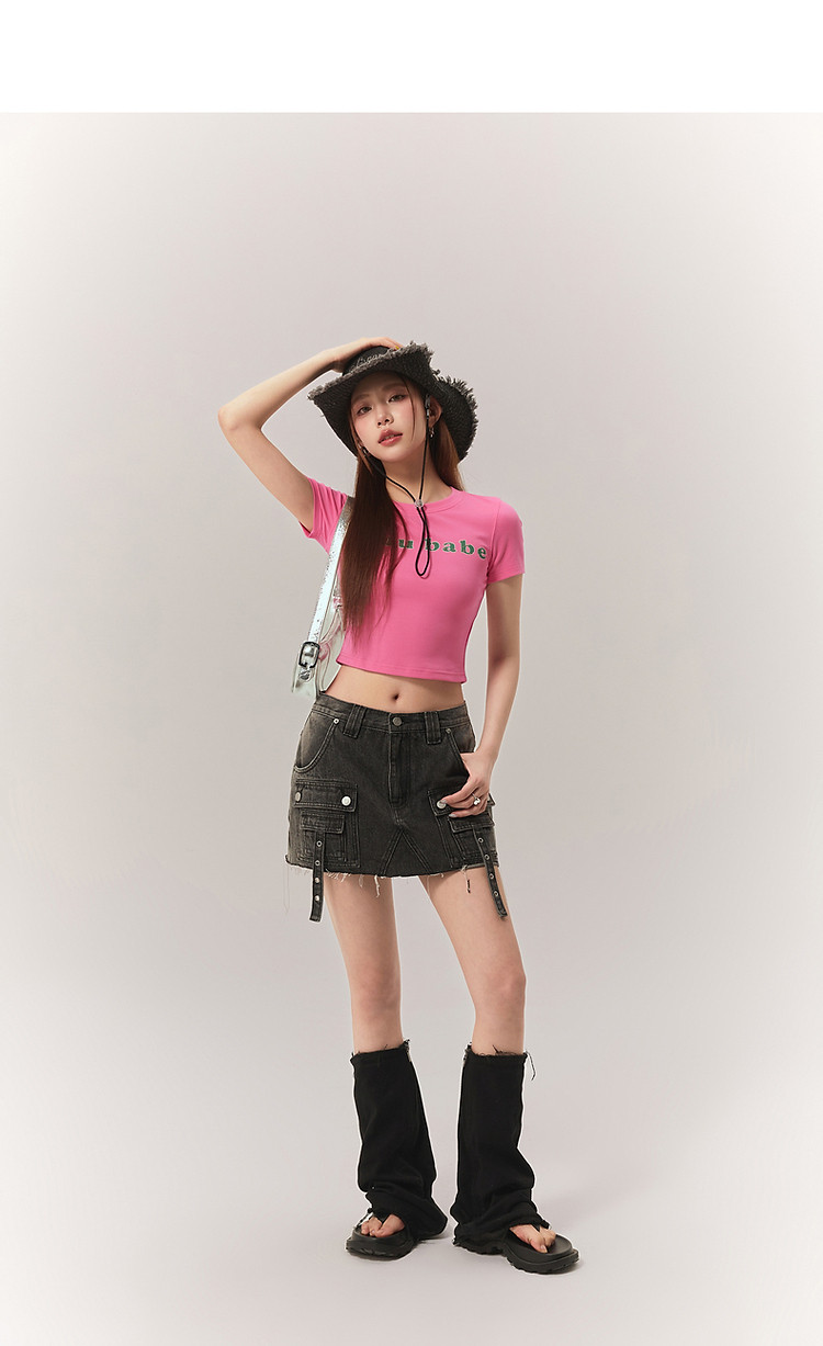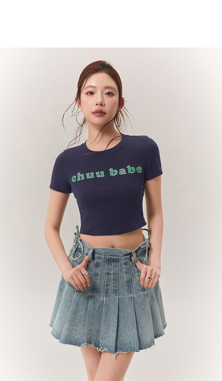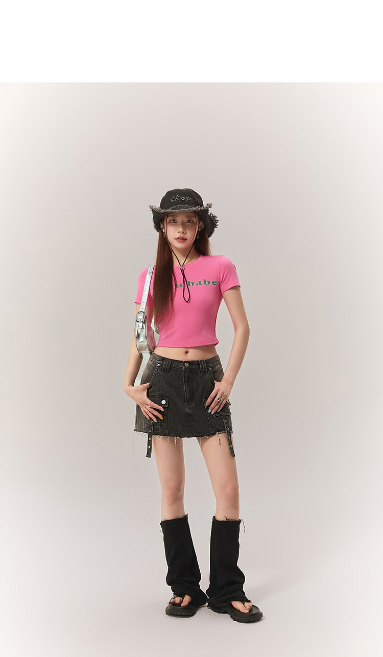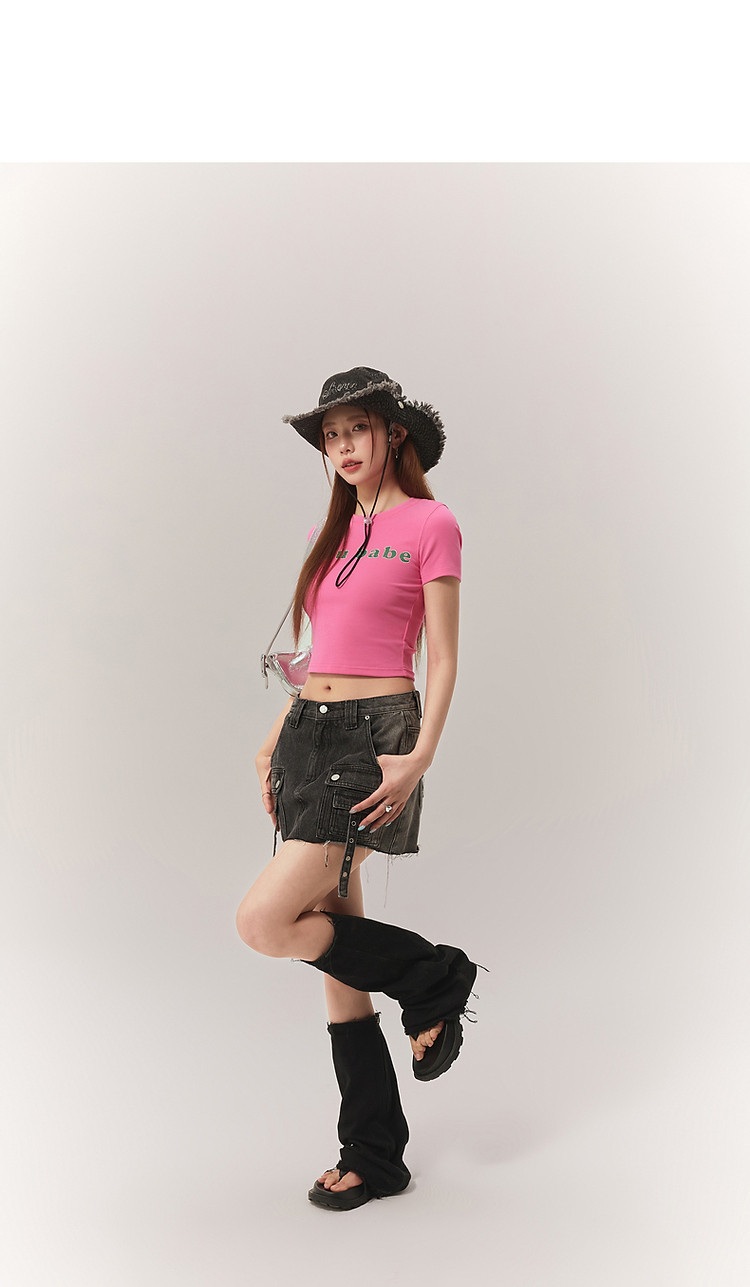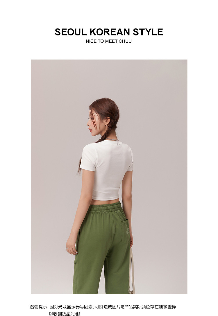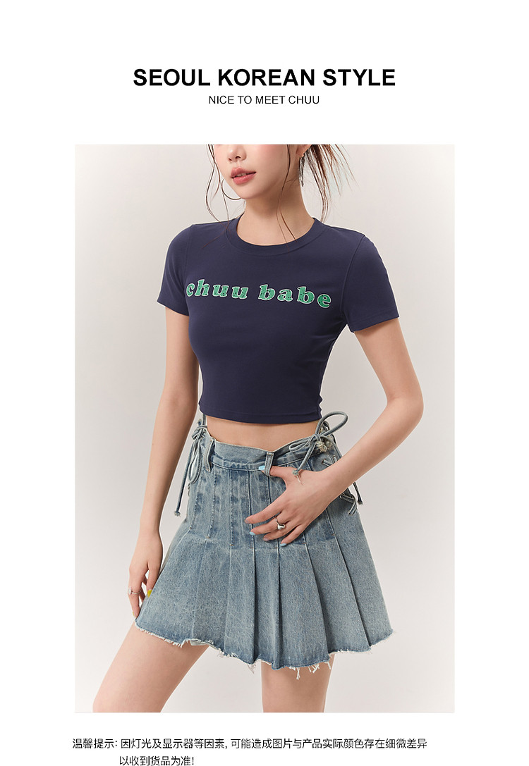 商品名称:字母印花正肩T恤女2025夏辣妹修身基础学院短袖上衣 507347