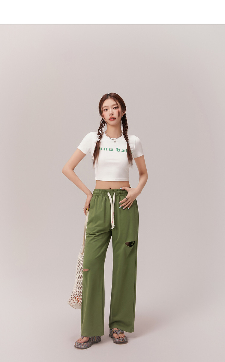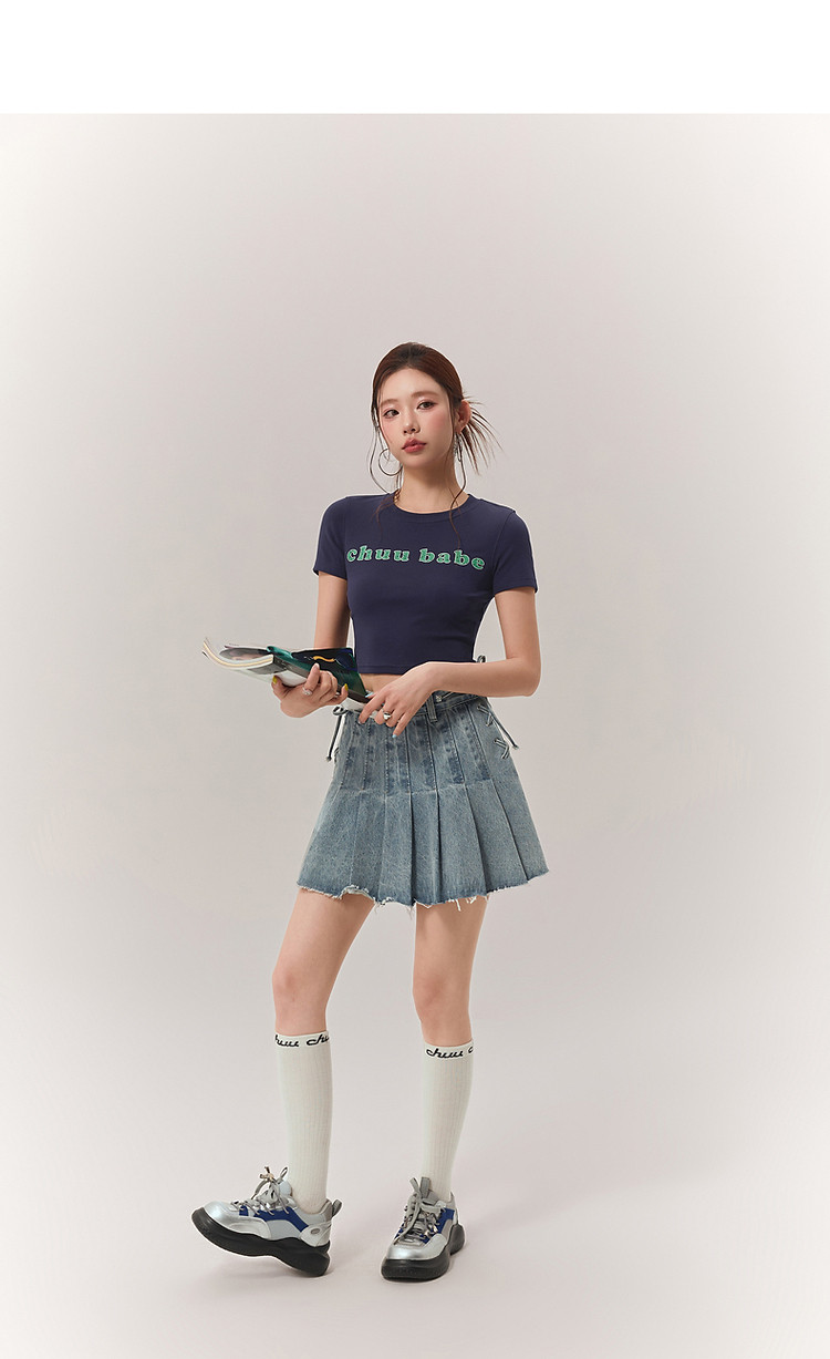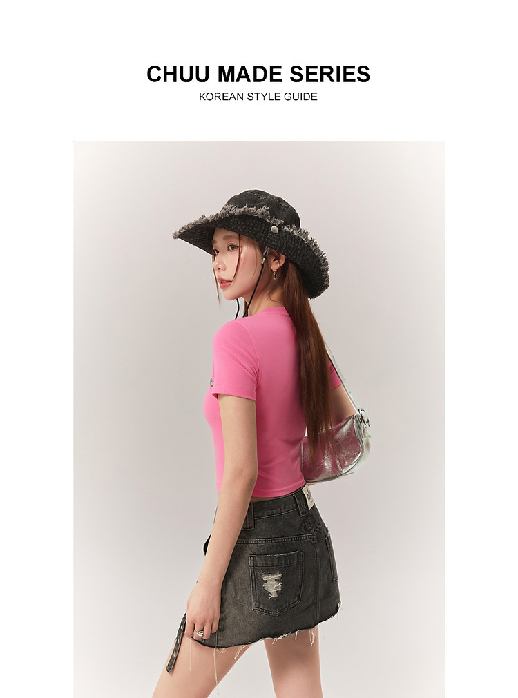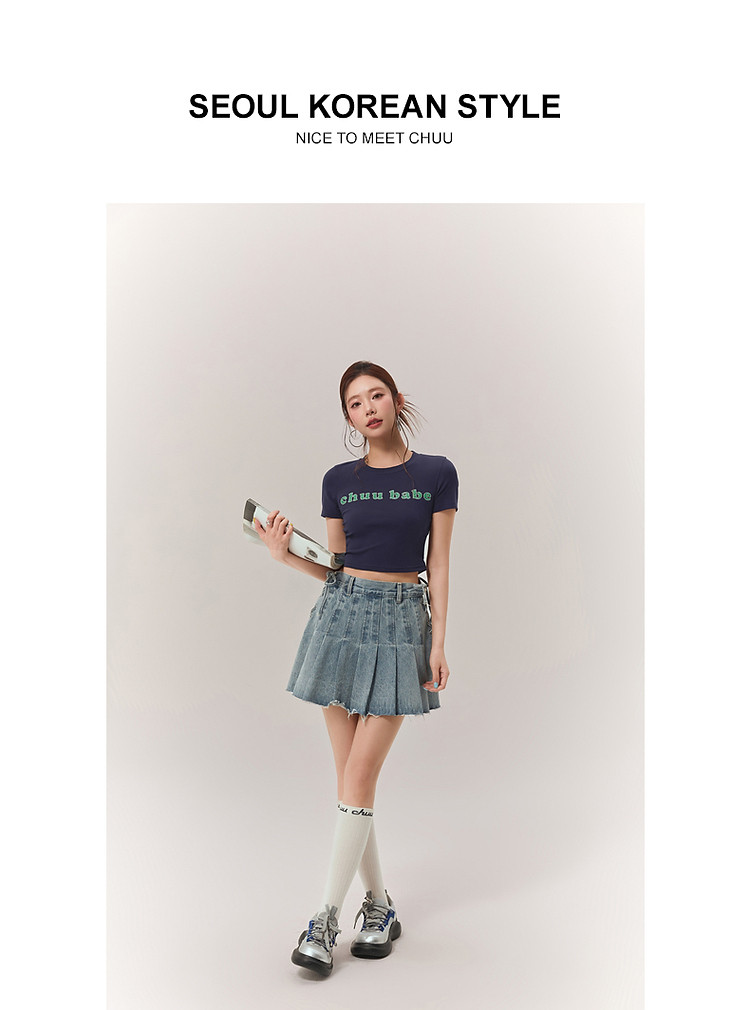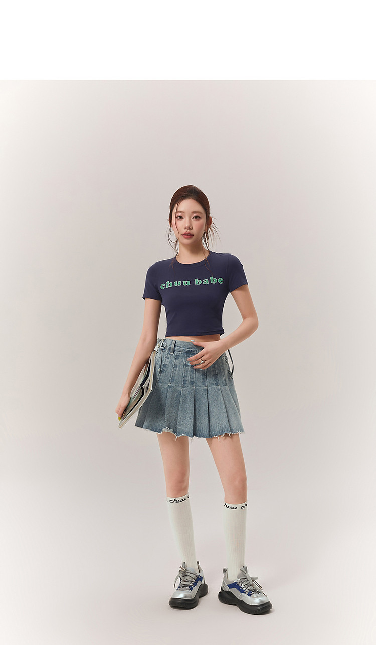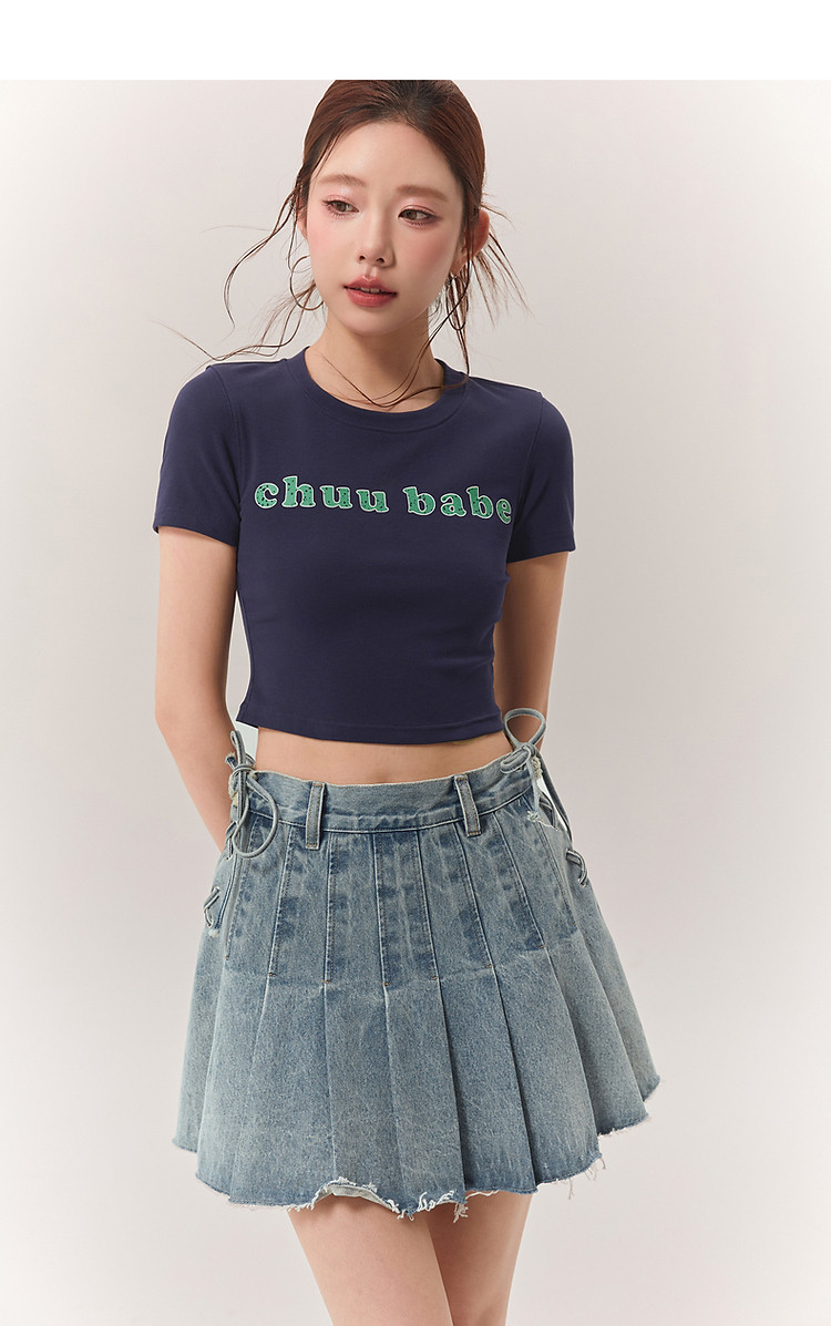 商品名称:字母印花正肩T恤女2025夏辣妹修身基础学院短袖上衣 507347