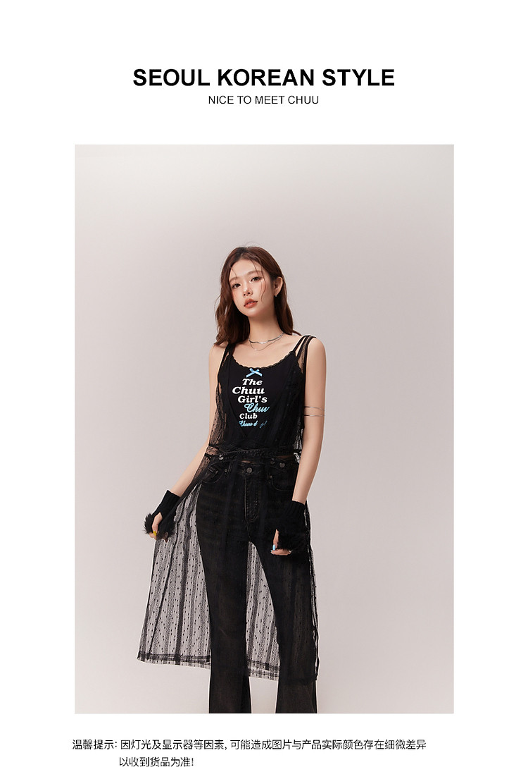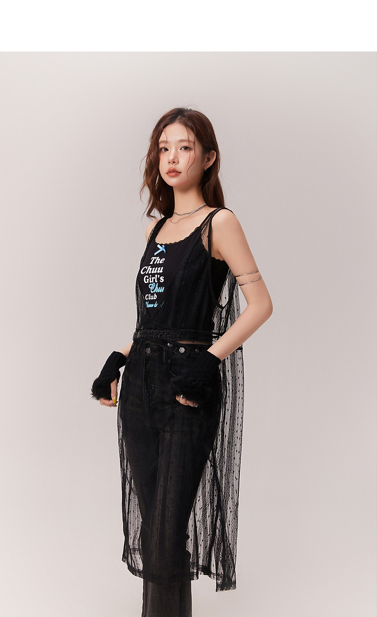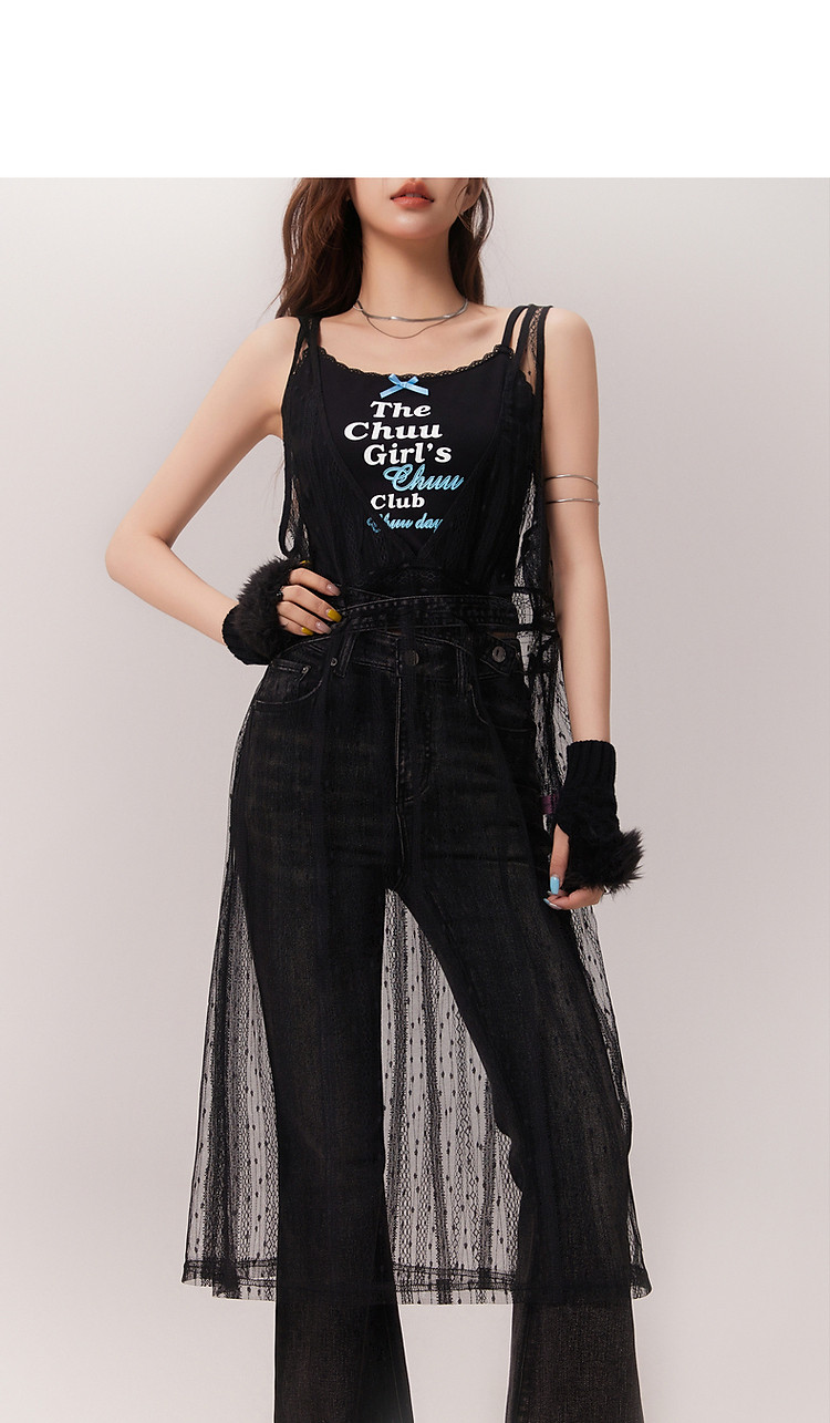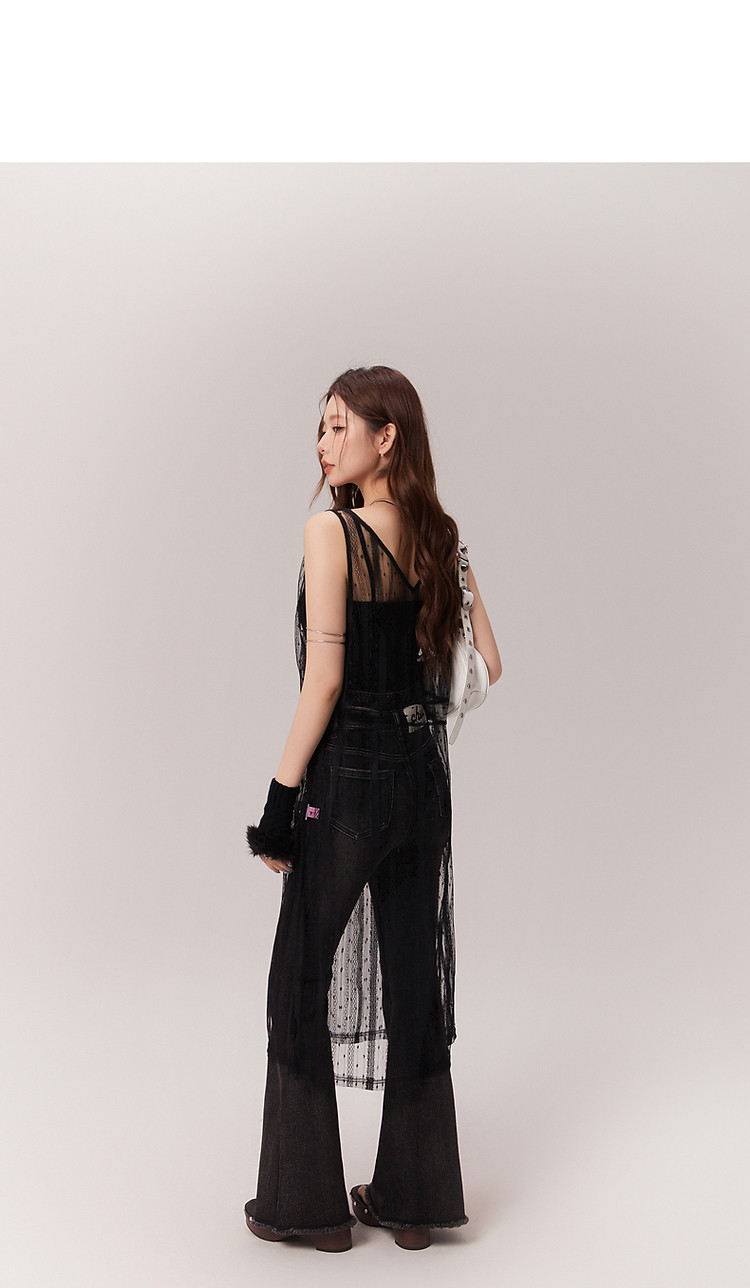 商品名称:钩花蕾丝无袖连衣裙女士2025夏辣妹轻薄V领中长裙子 388307