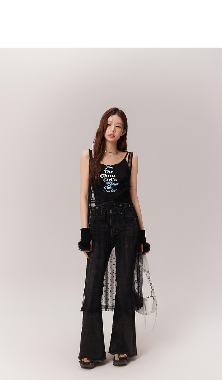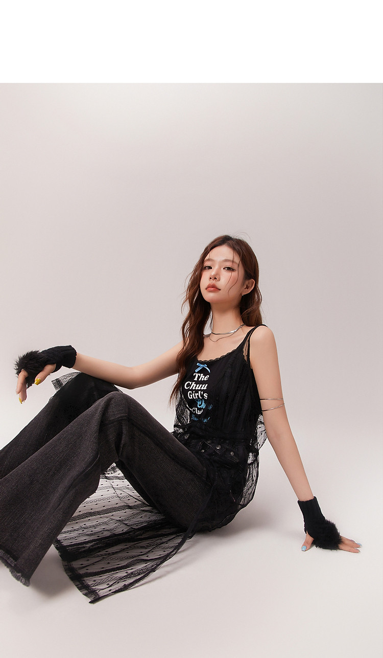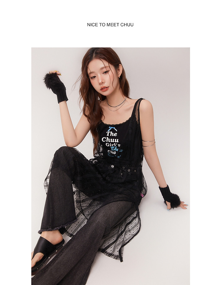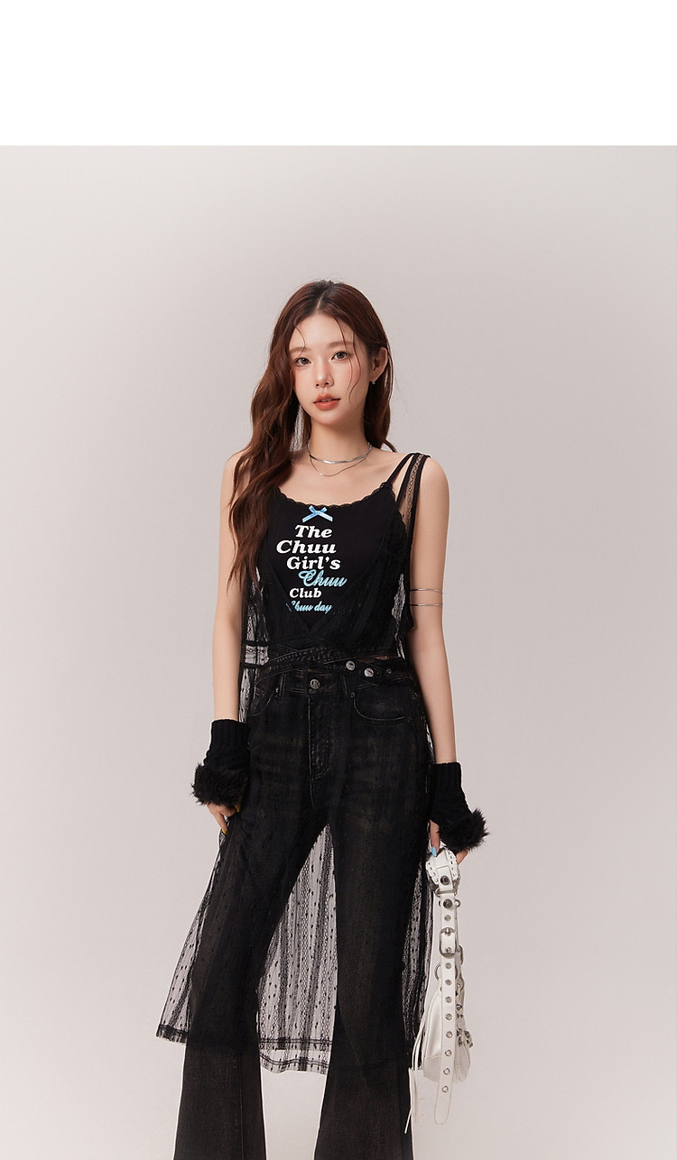 商品名称:钩花蕾丝无袖连衣裙女士2025夏辣妹轻薄V领中长裙子 388307