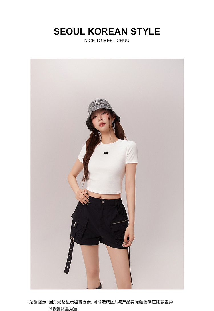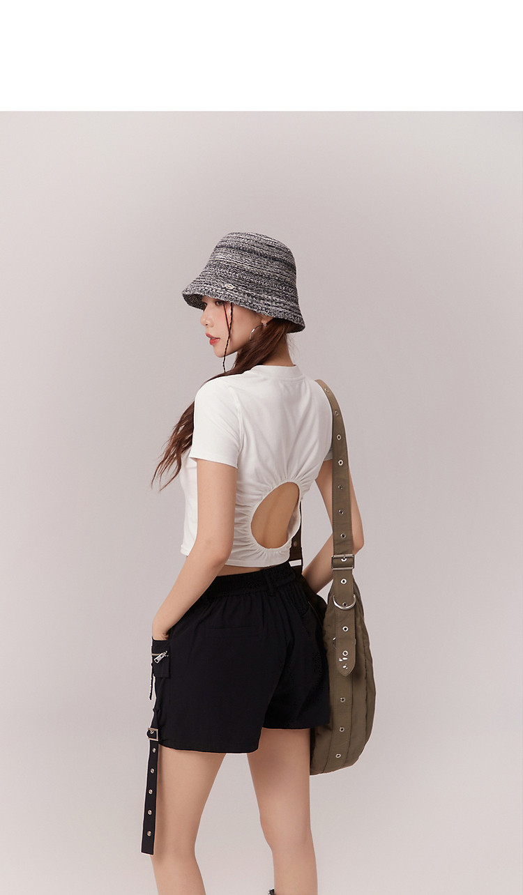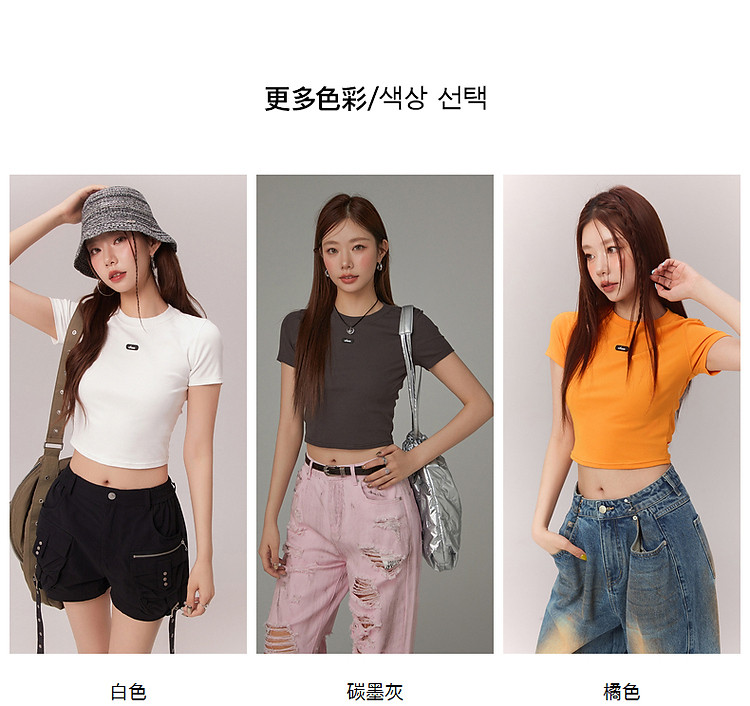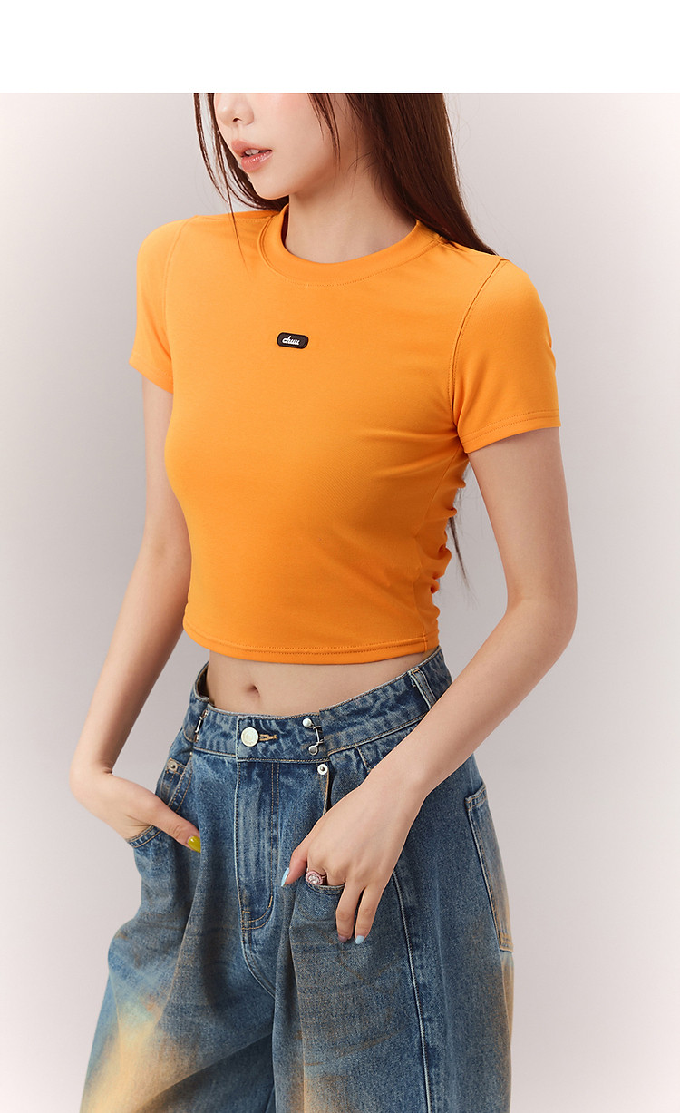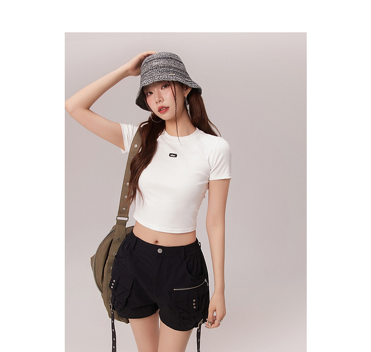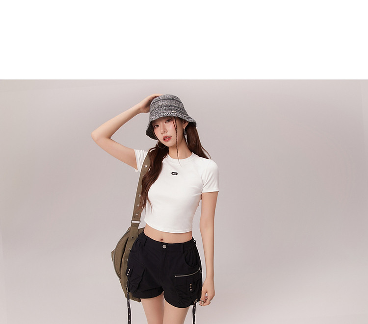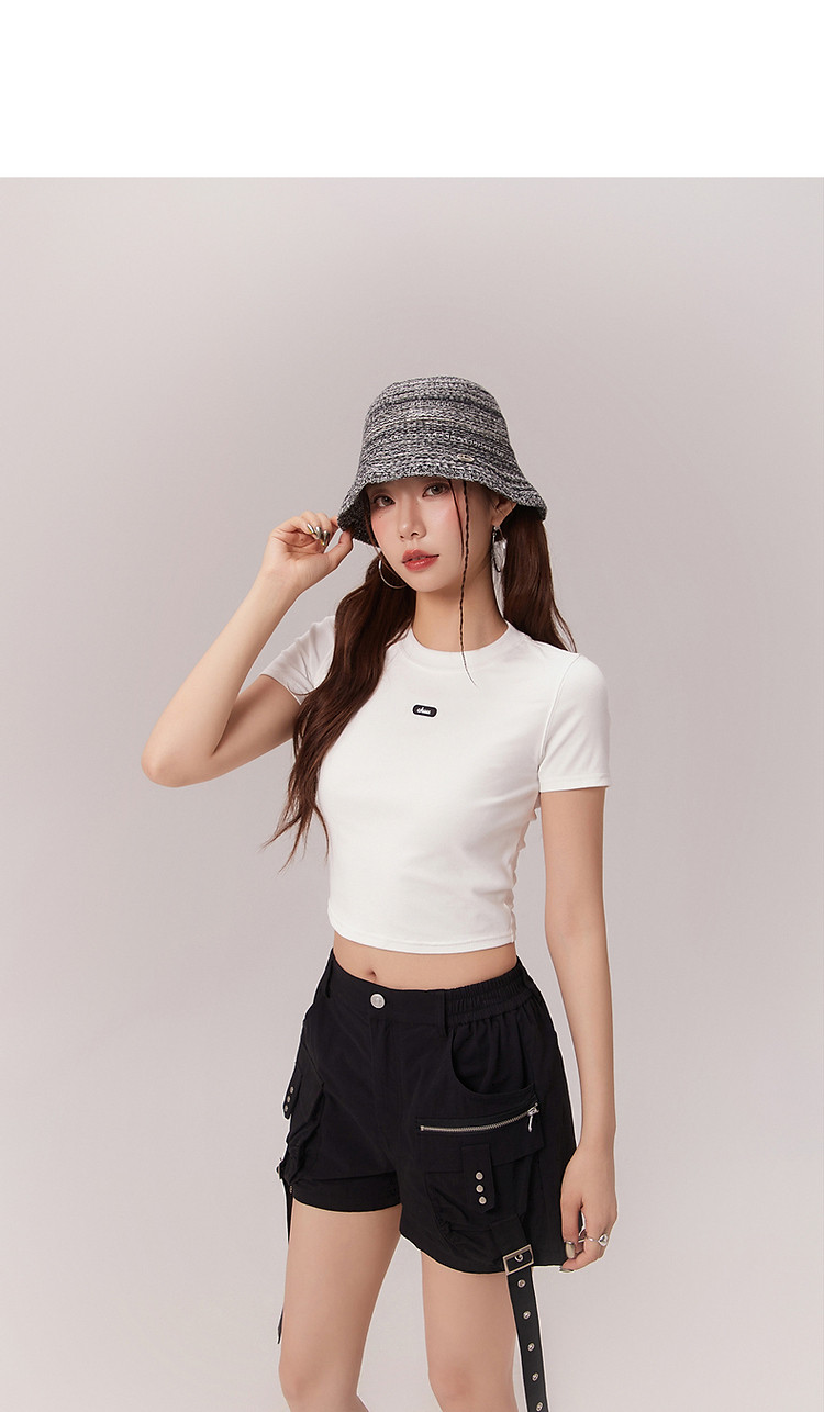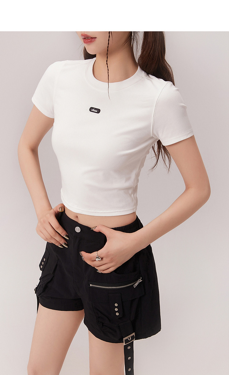 商品名称:后背镂空短袖T恤女2025夏字母贴标辣妹修身短款上衣 419475