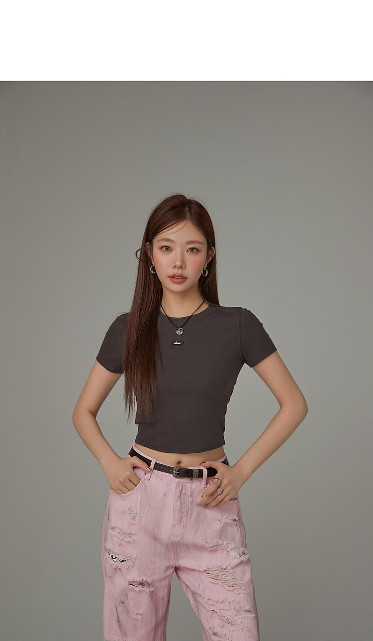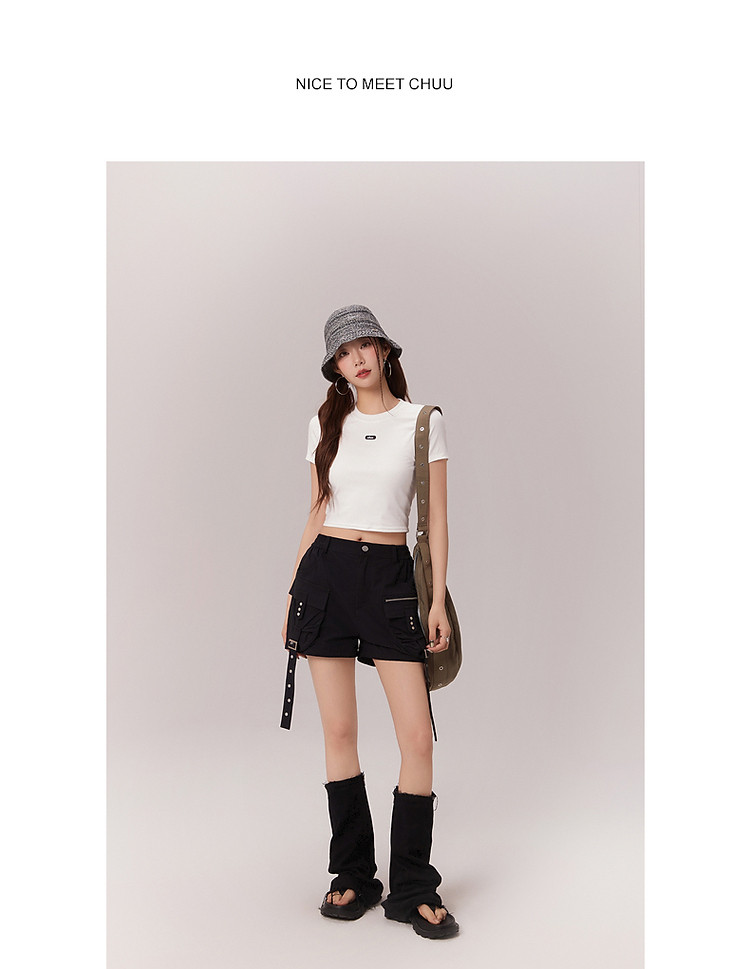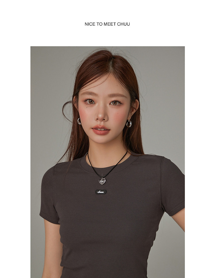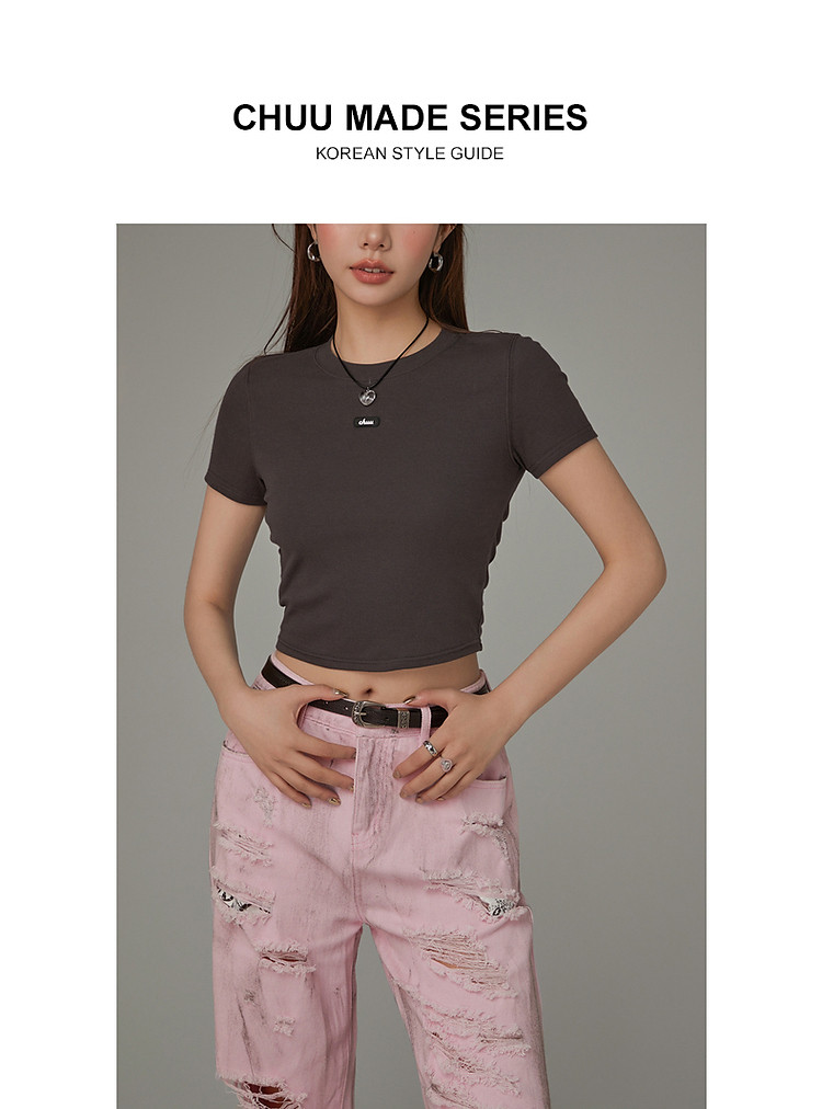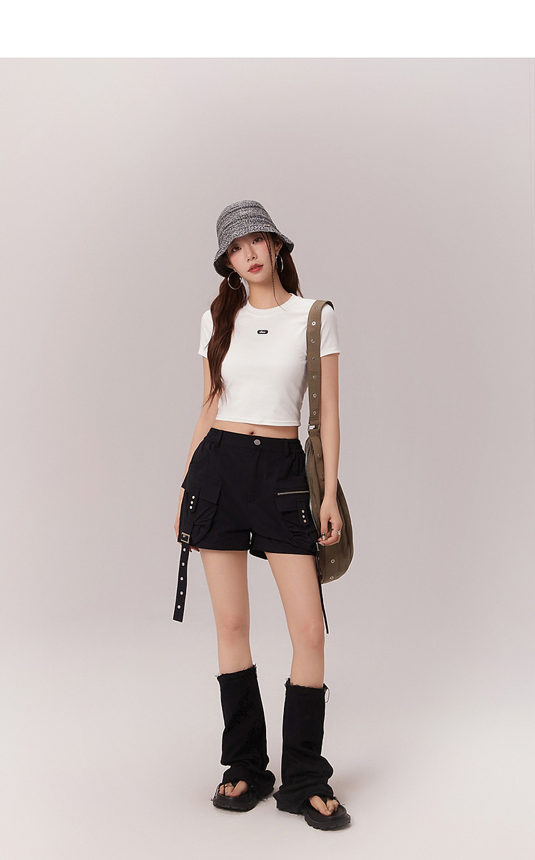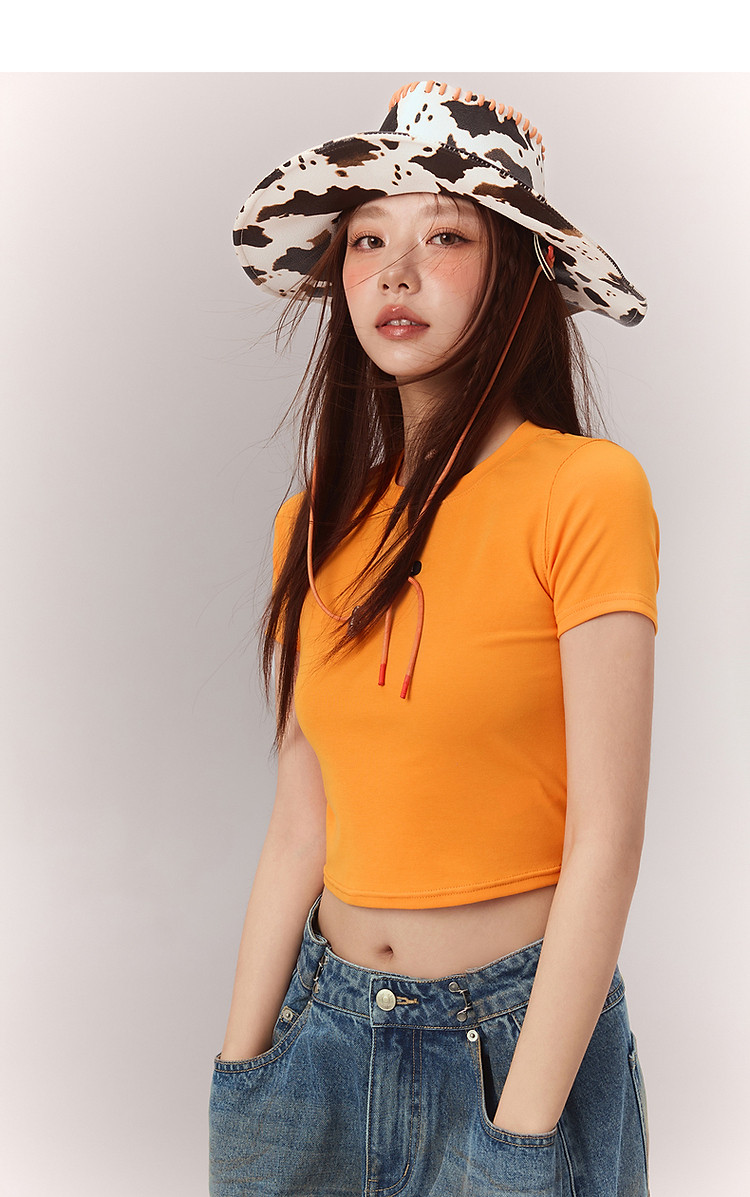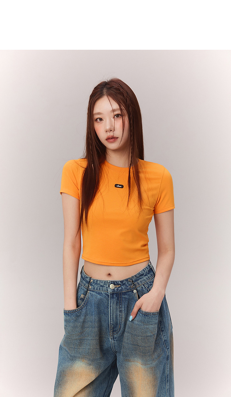 商品名称:后背镂空短袖T恤女2025夏字母贴标辣妹修身短款上衣 419475