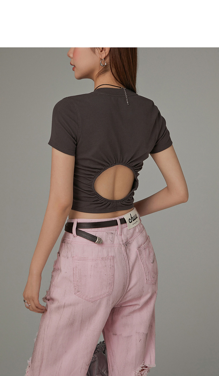 后背镂空短袖T恤女2025夏字母贴标辣妹修身短款上衣 419475
