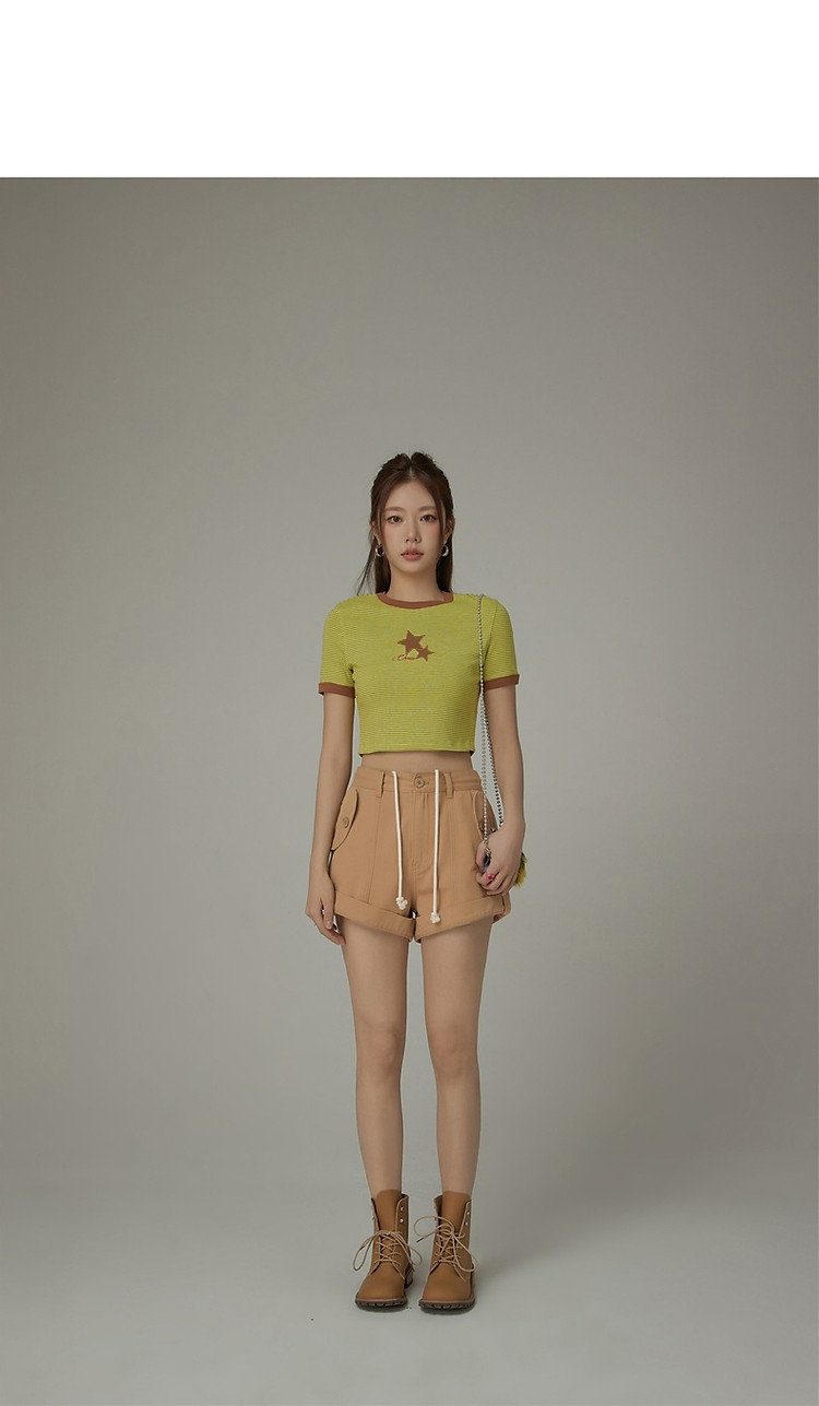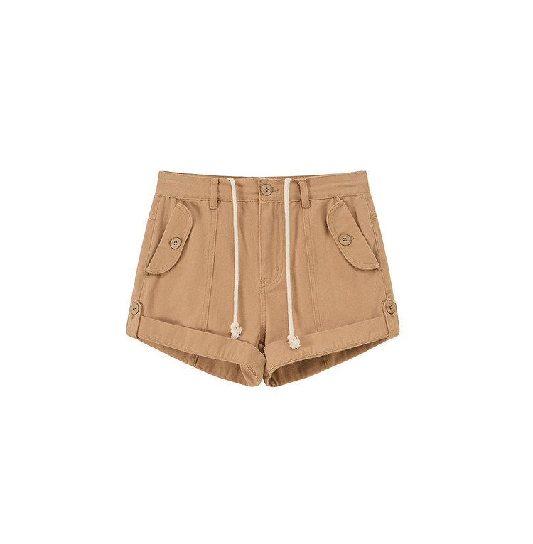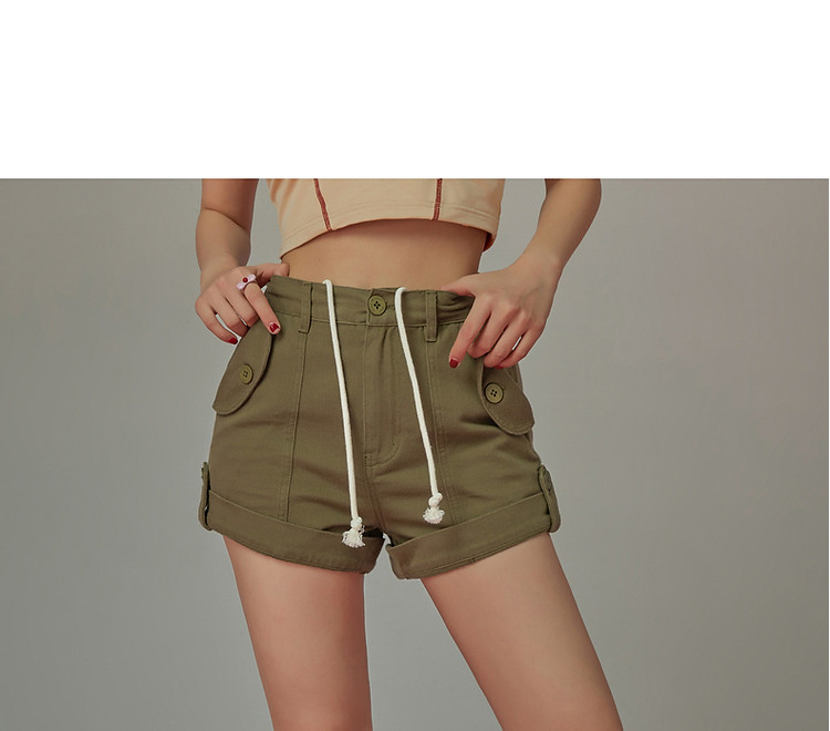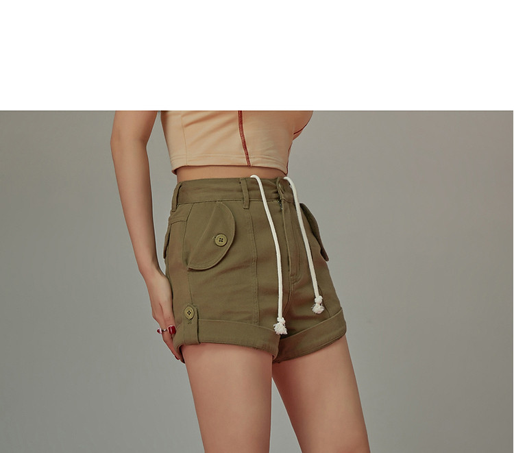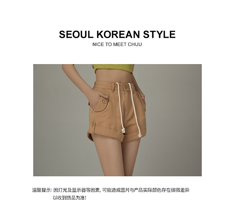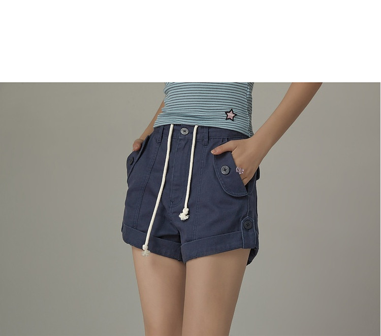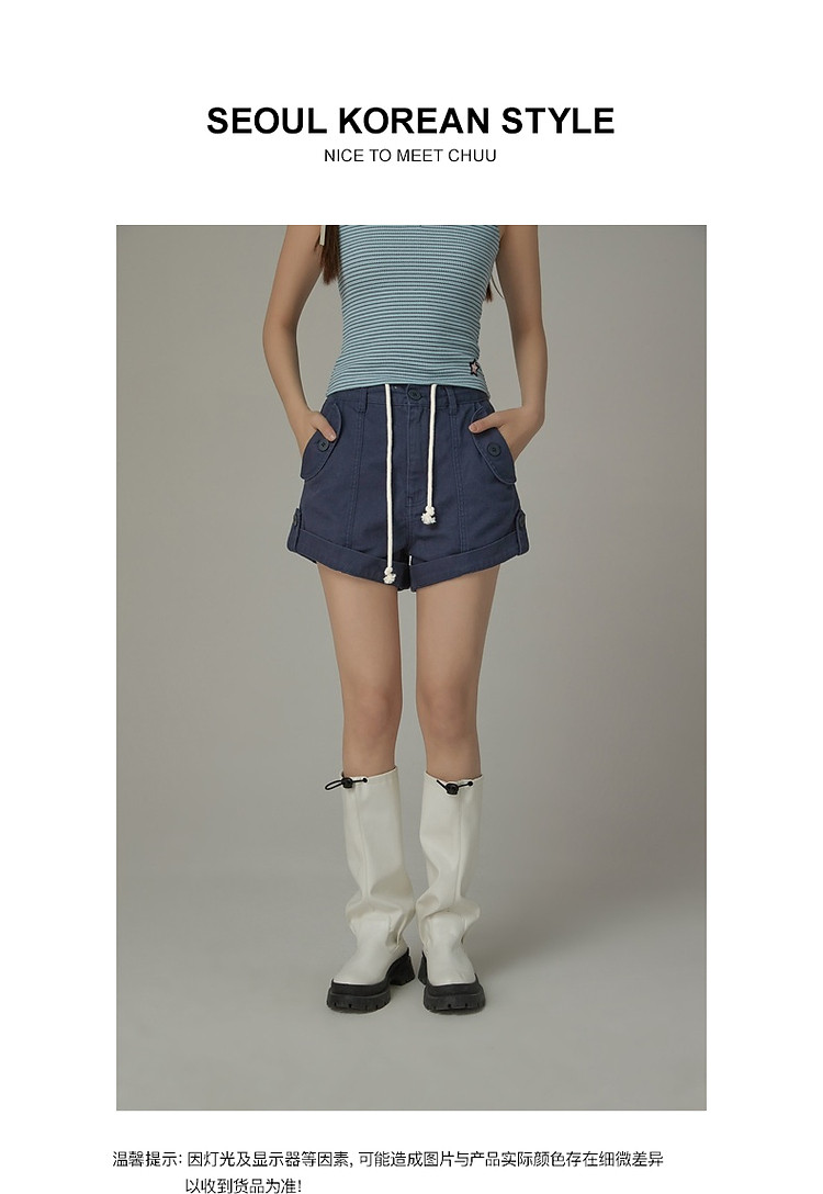 商品名称:高腰抽绳休闲裤女2025夏减龄百搭洋气直筒短裤子 052499