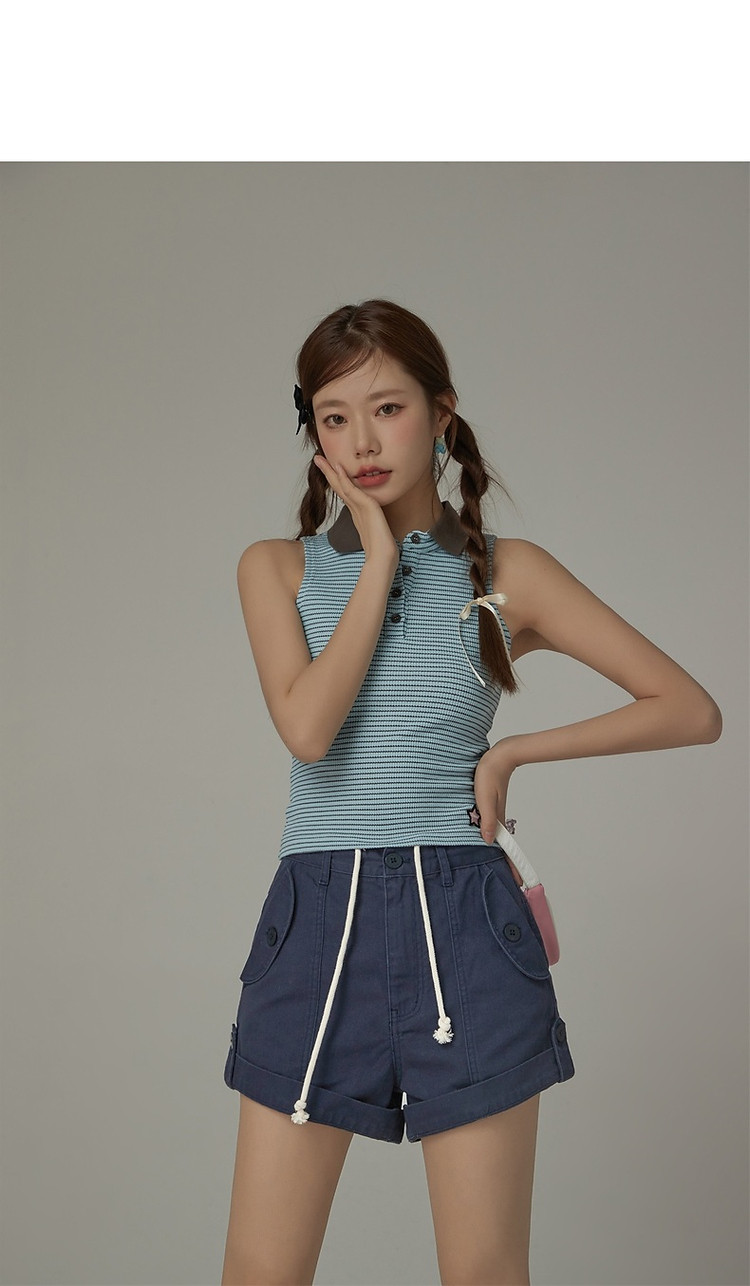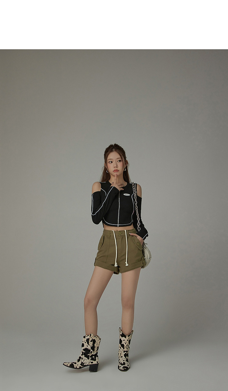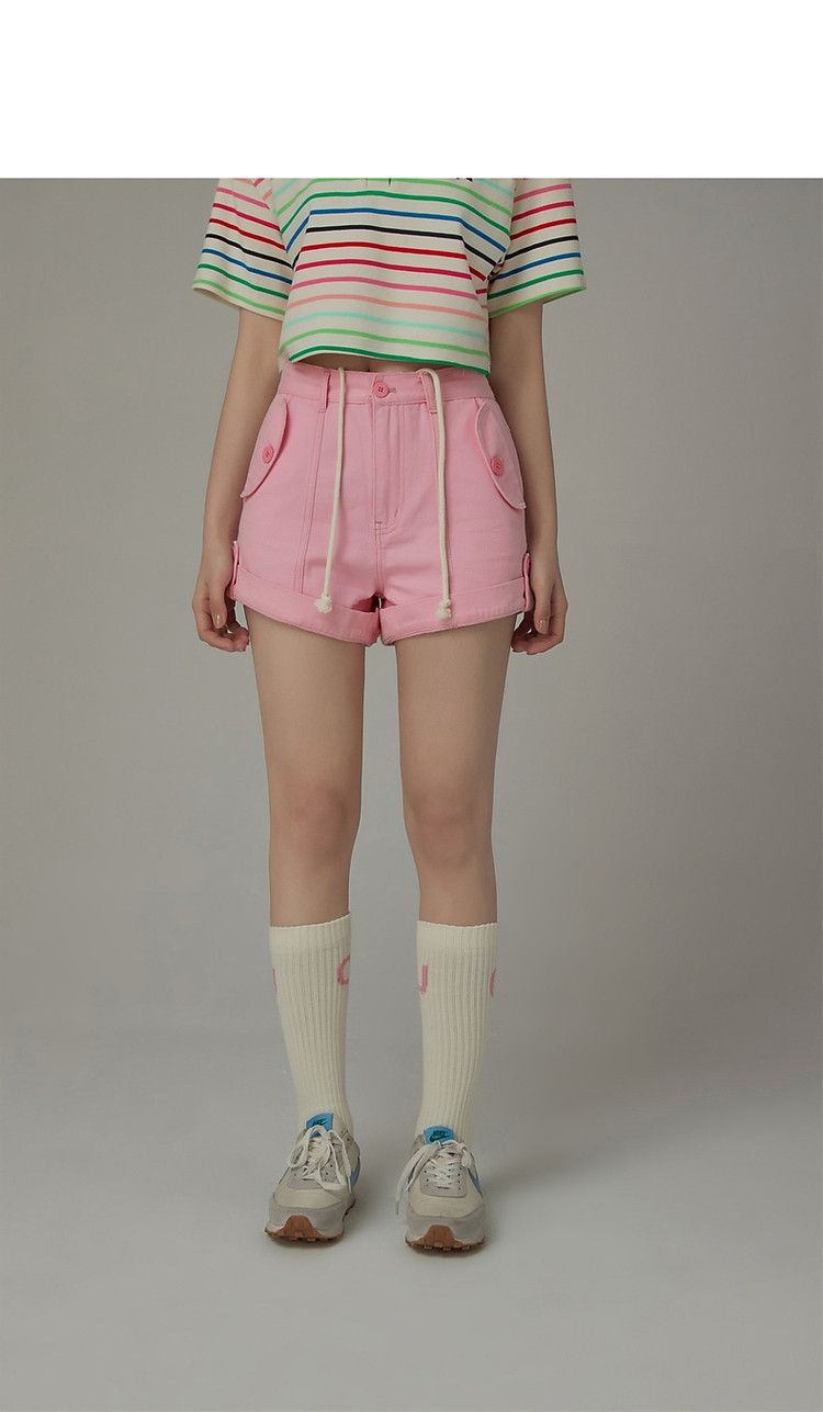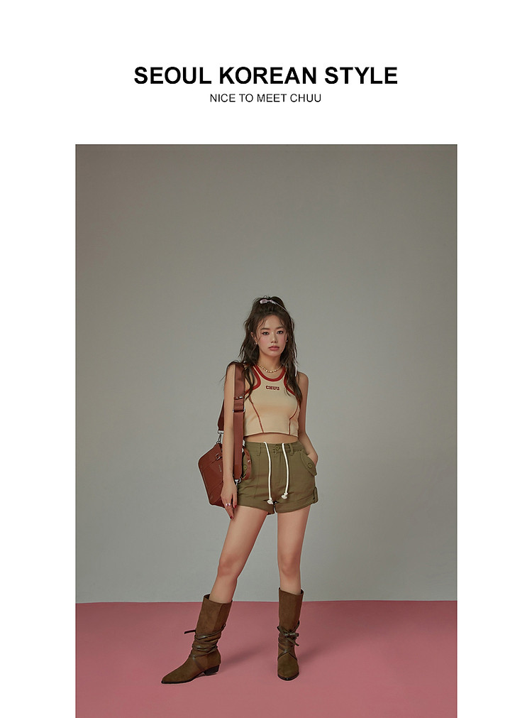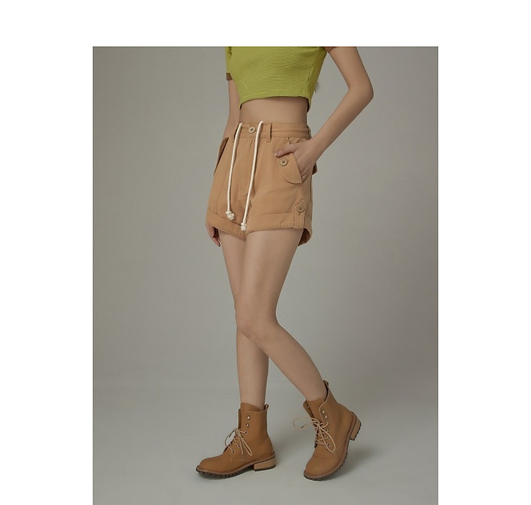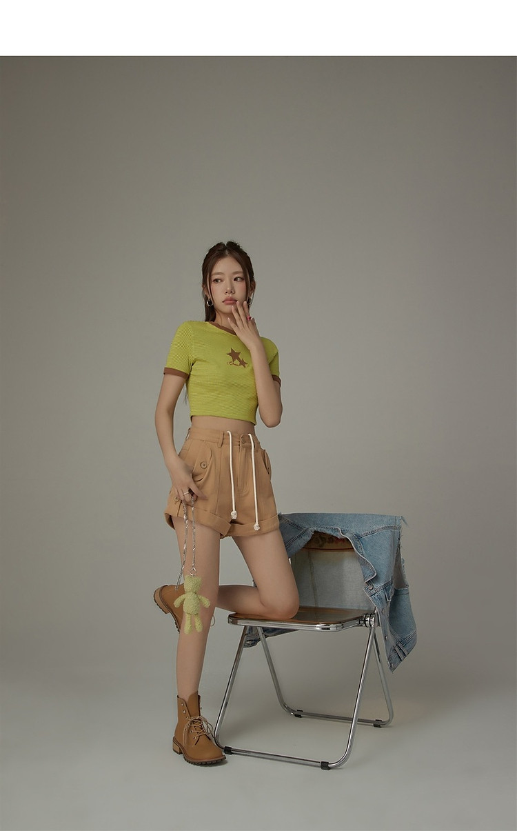 商品名称:高腰抽绳休闲裤女2025夏减龄百搭洋气直筒短裤子 052499
