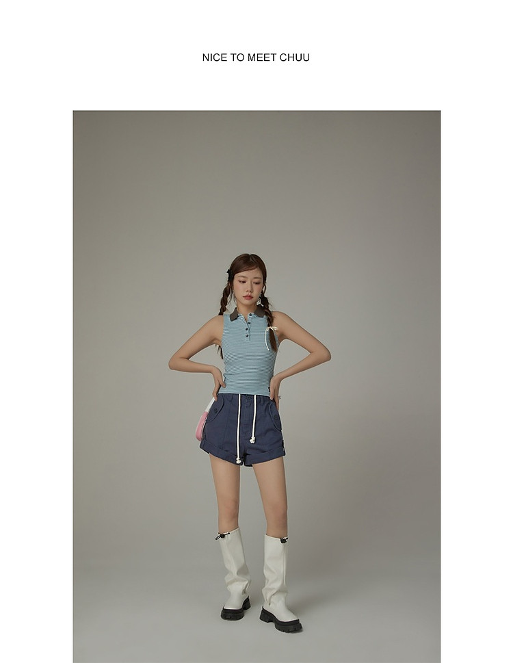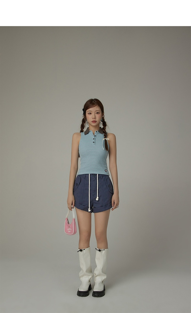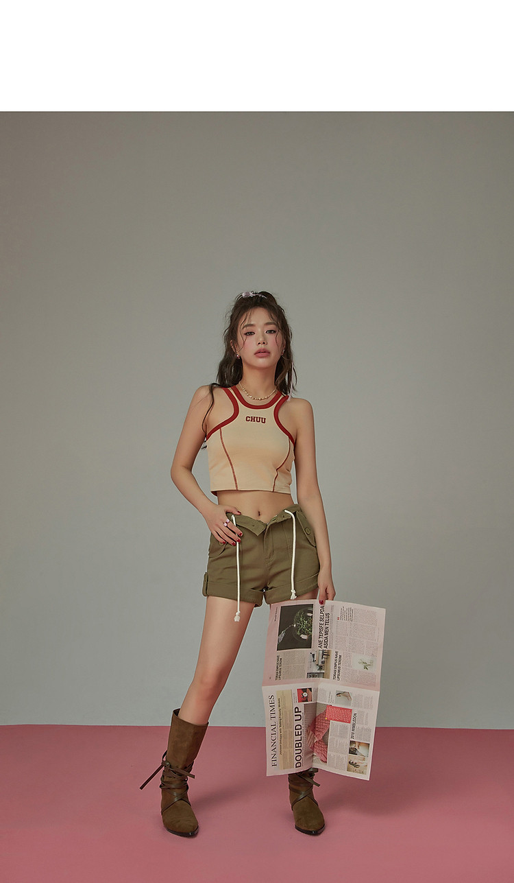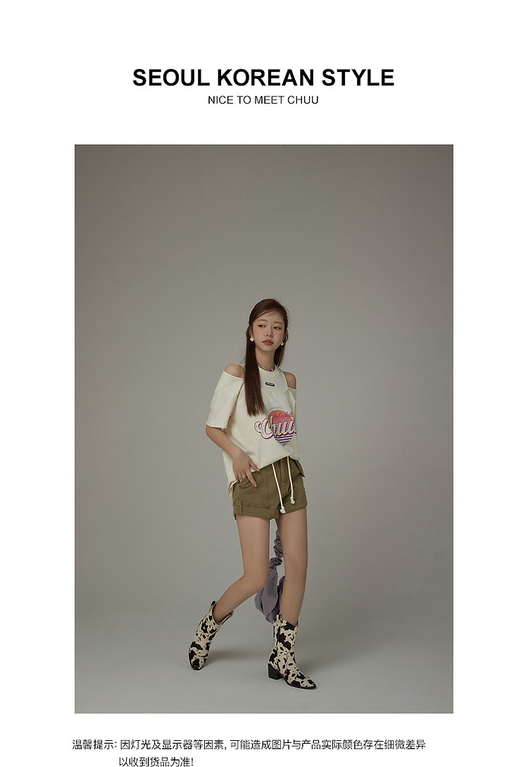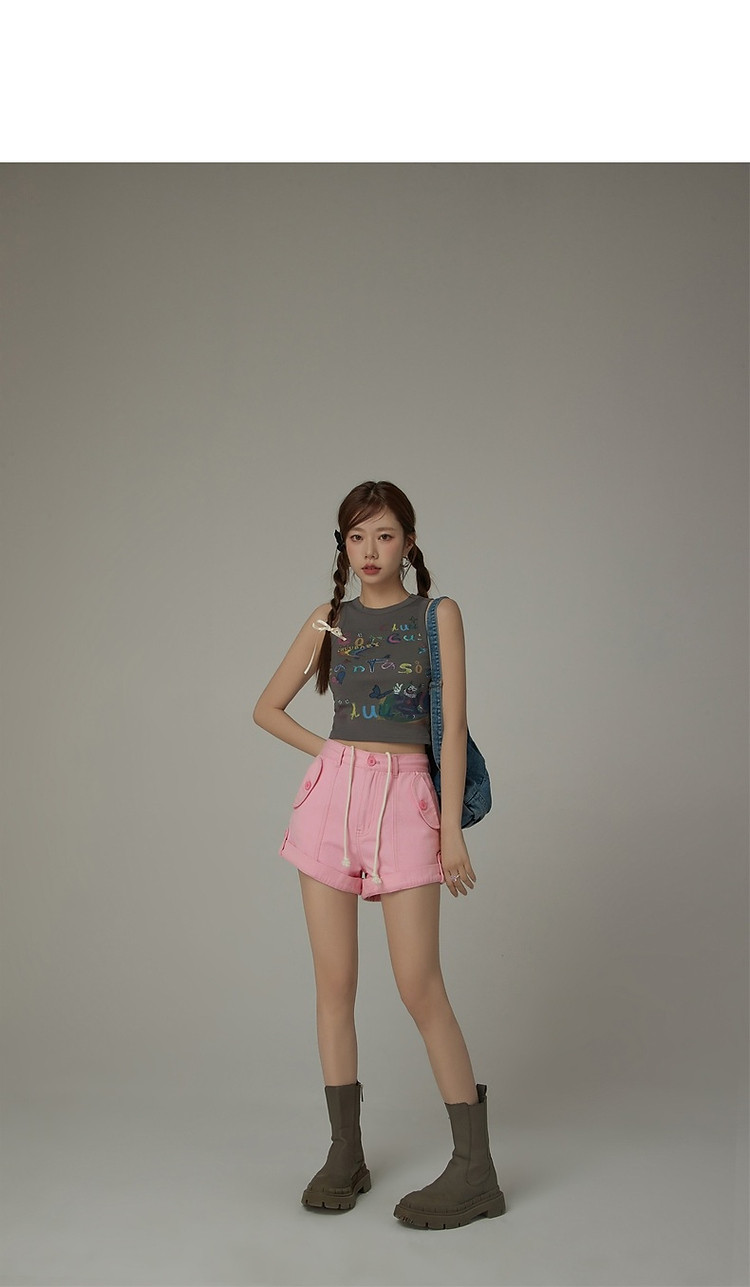 商品名称:高腰抽绳休闲裤女2025夏减龄百搭洋气直筒短裤子 052499