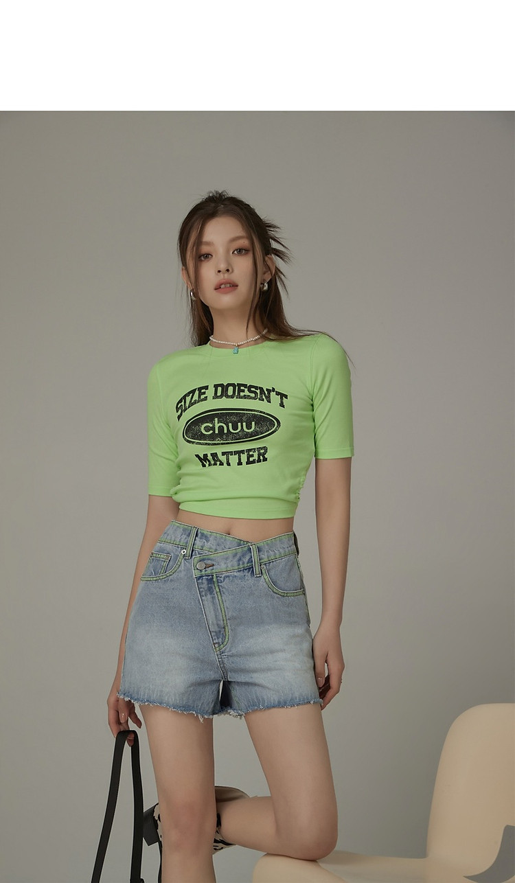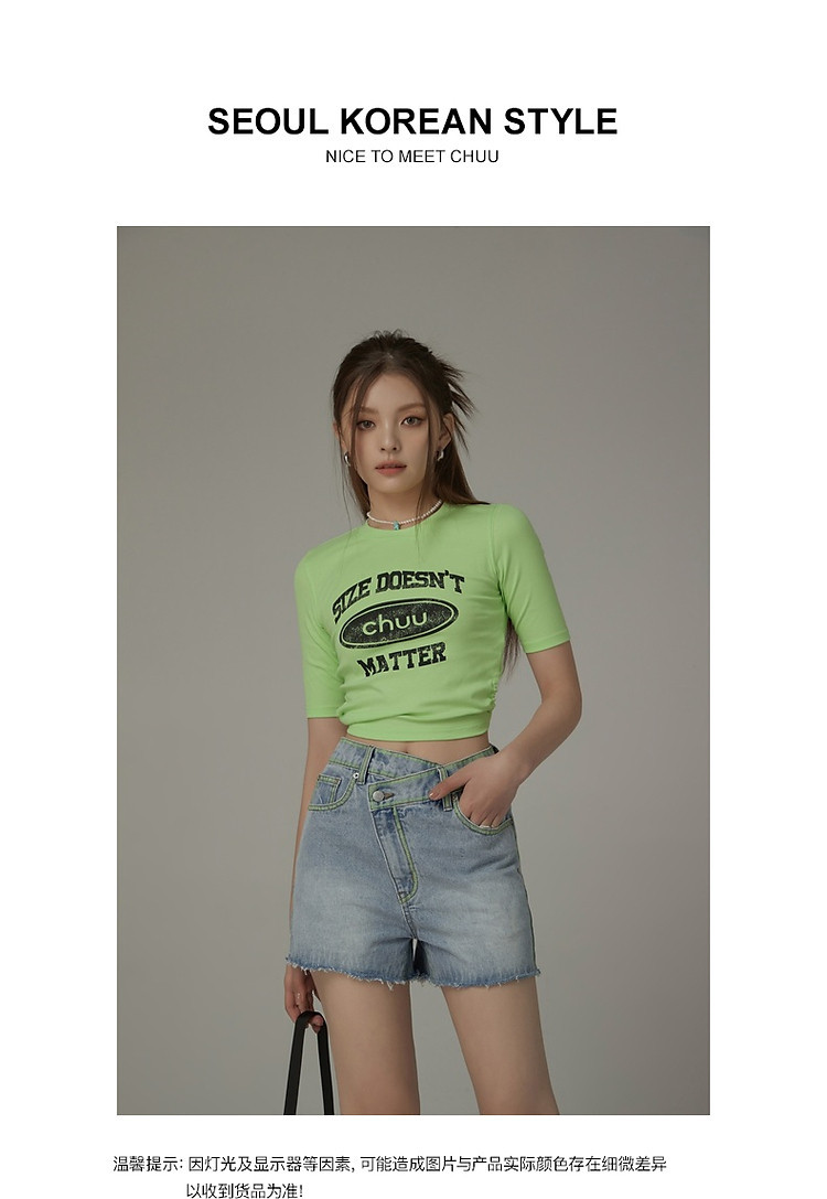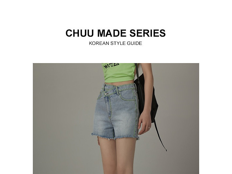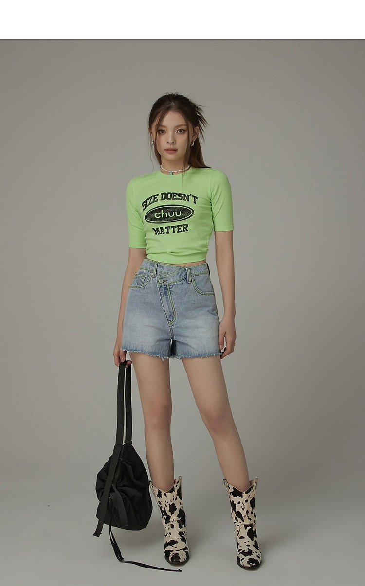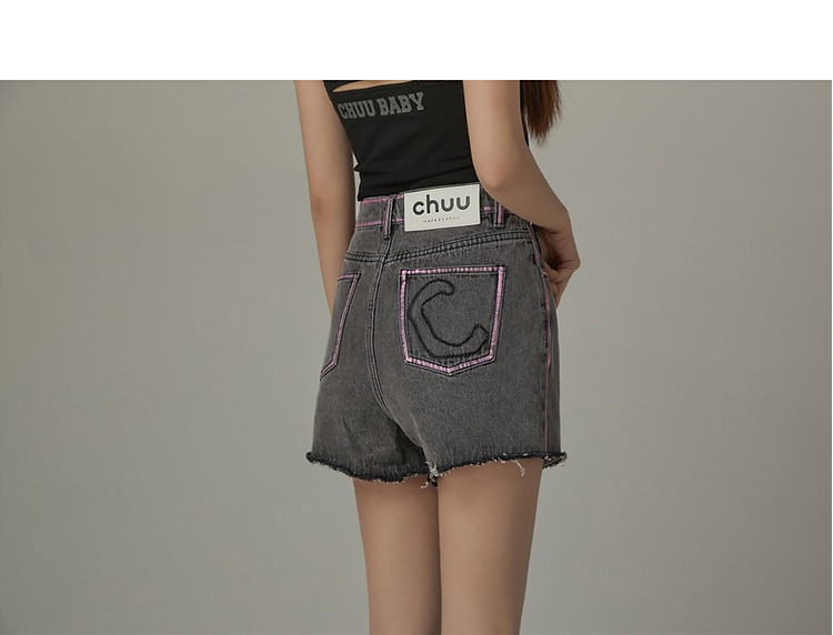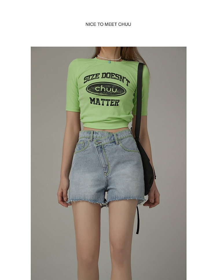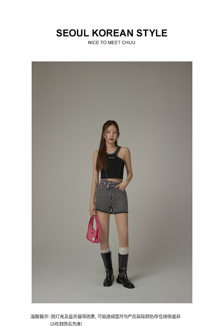 商品名称:斜门襟撞色毛边牛仔短裤女2025夏辣妹热裤直筒裤 337619