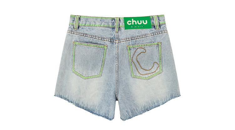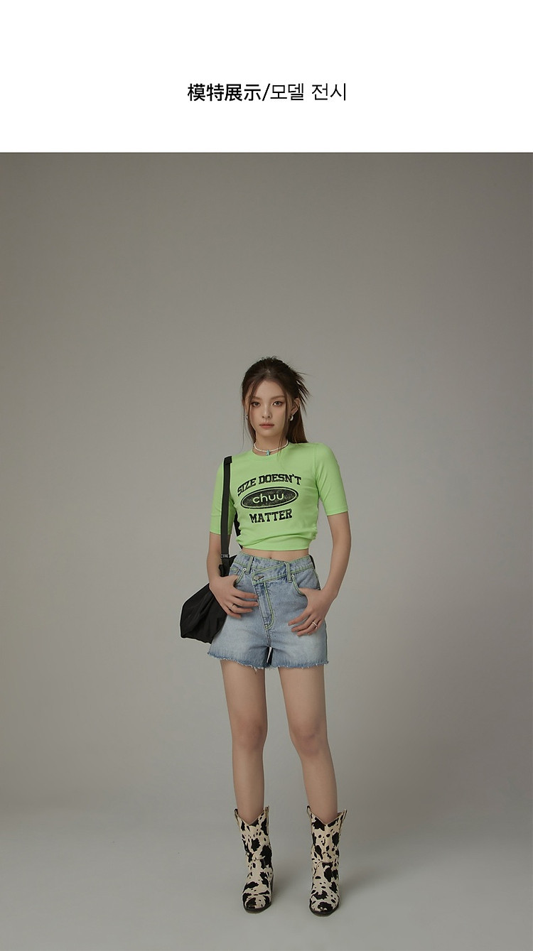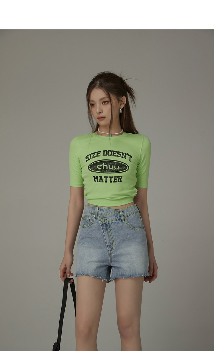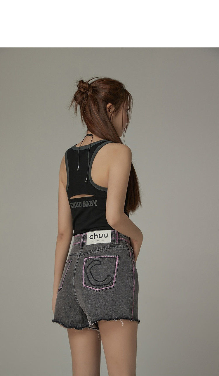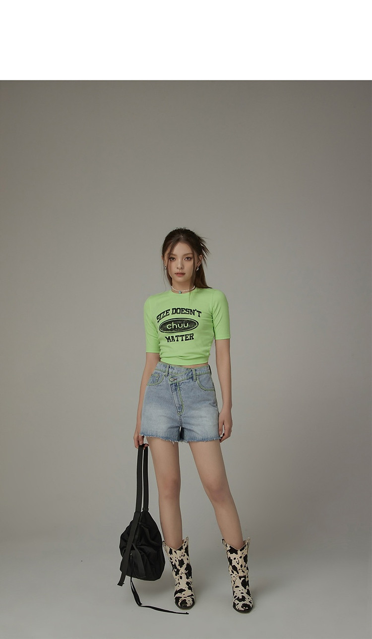 商品名称:斜门襟撞色毛边牛仔短裤女2025夏辣妹热裤直筒裤 337619