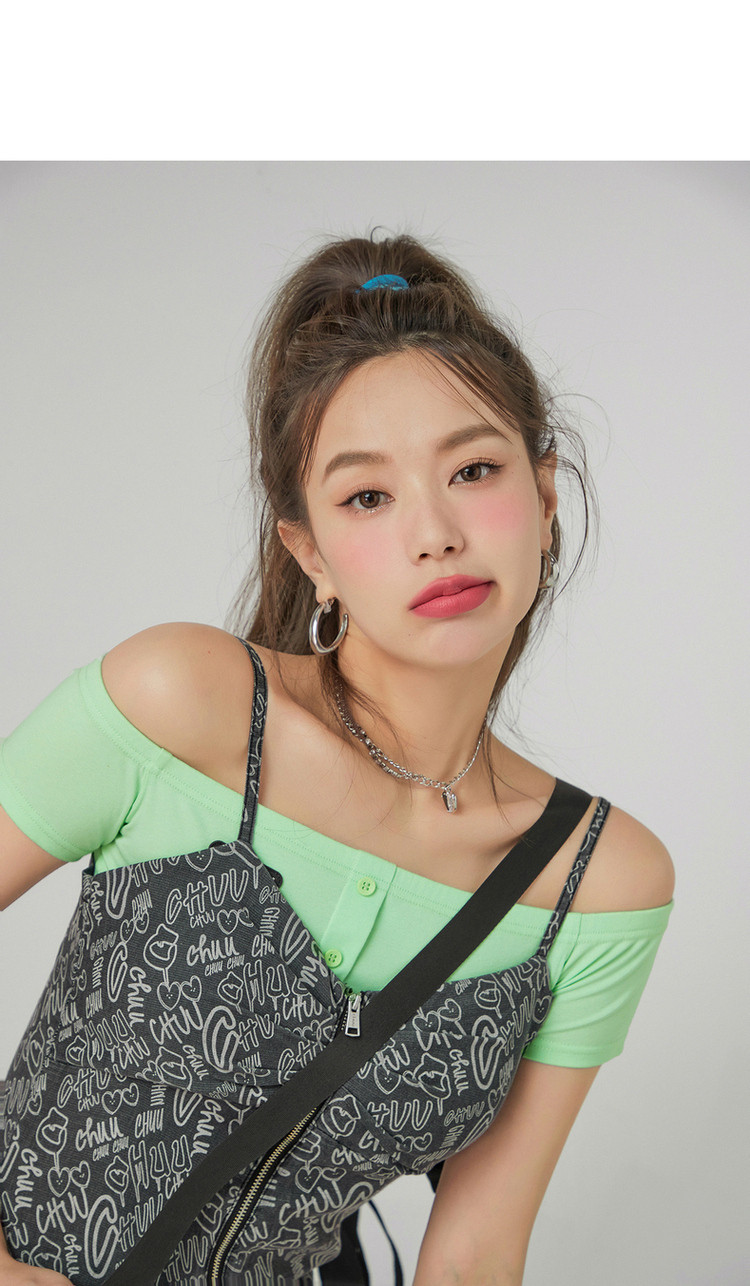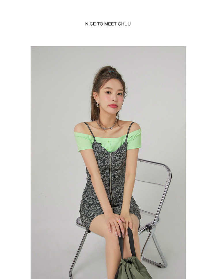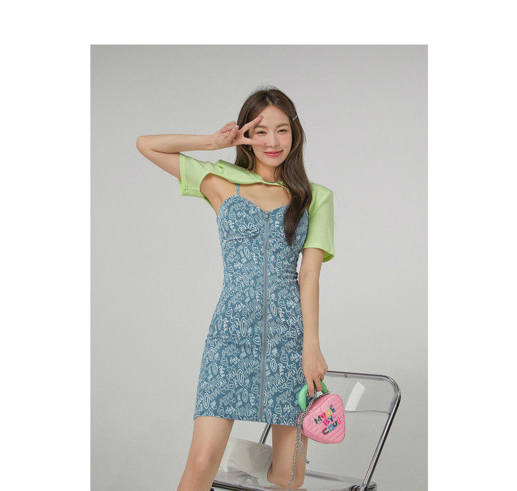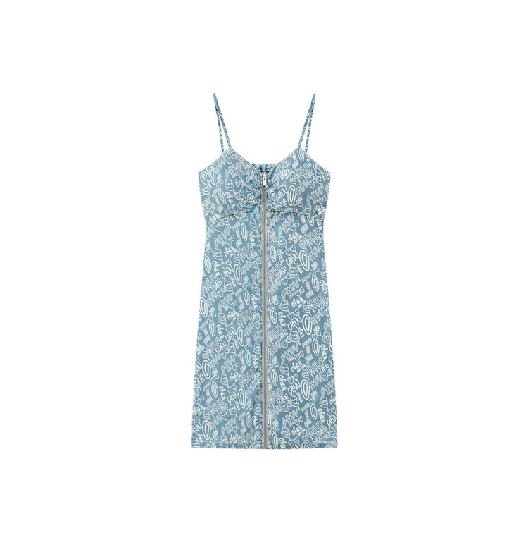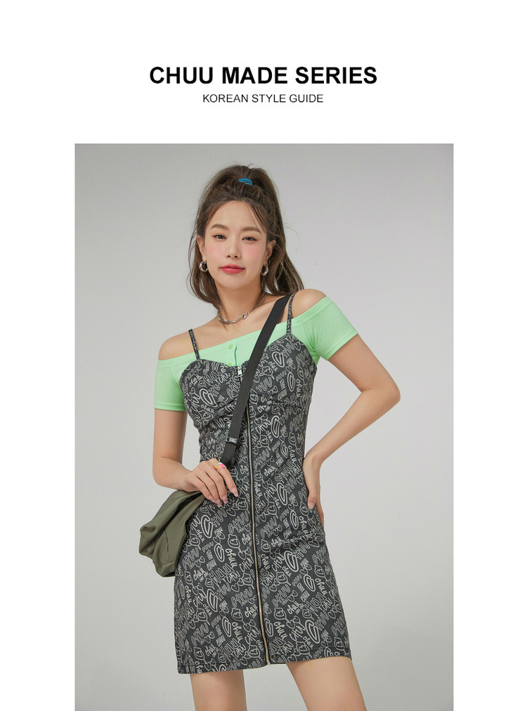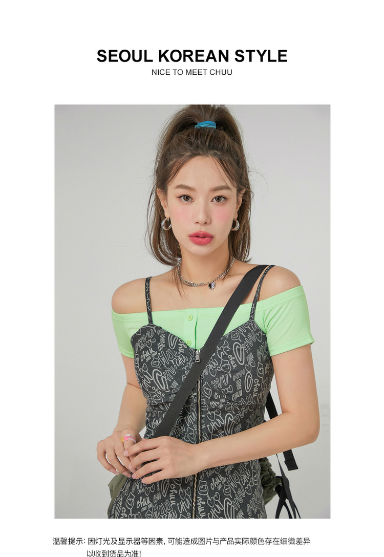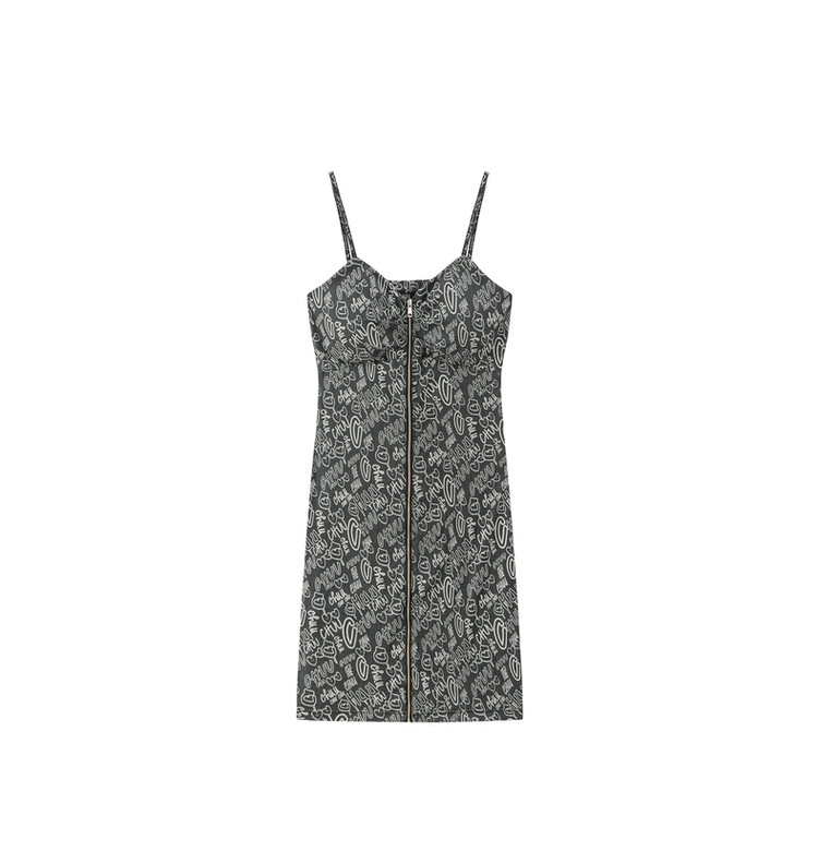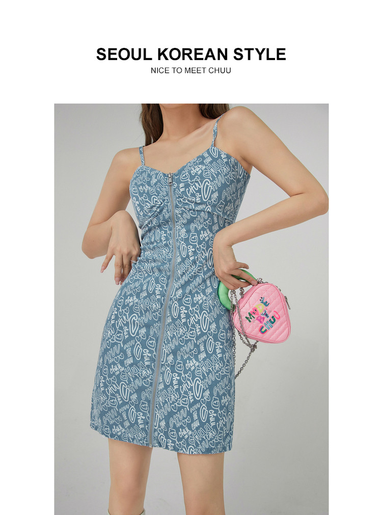 CHUU时尚修身字母吊带连衣裙女夏季辣妹洋气个性短裙 123091