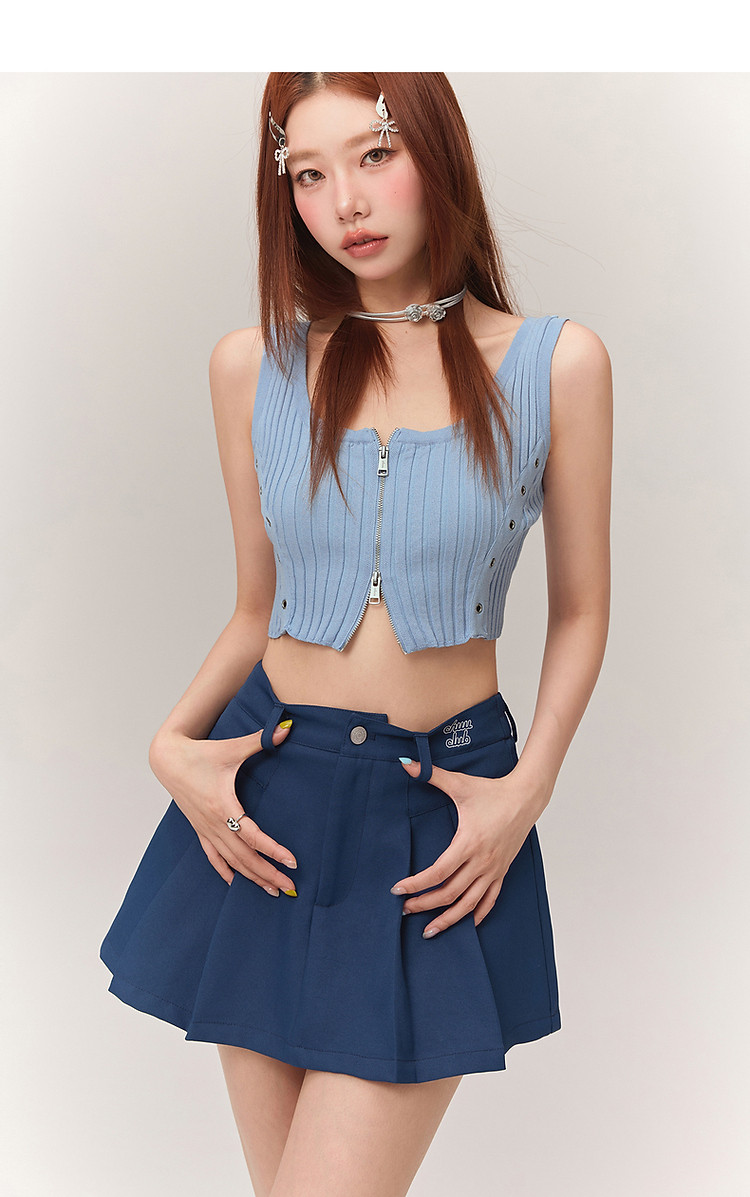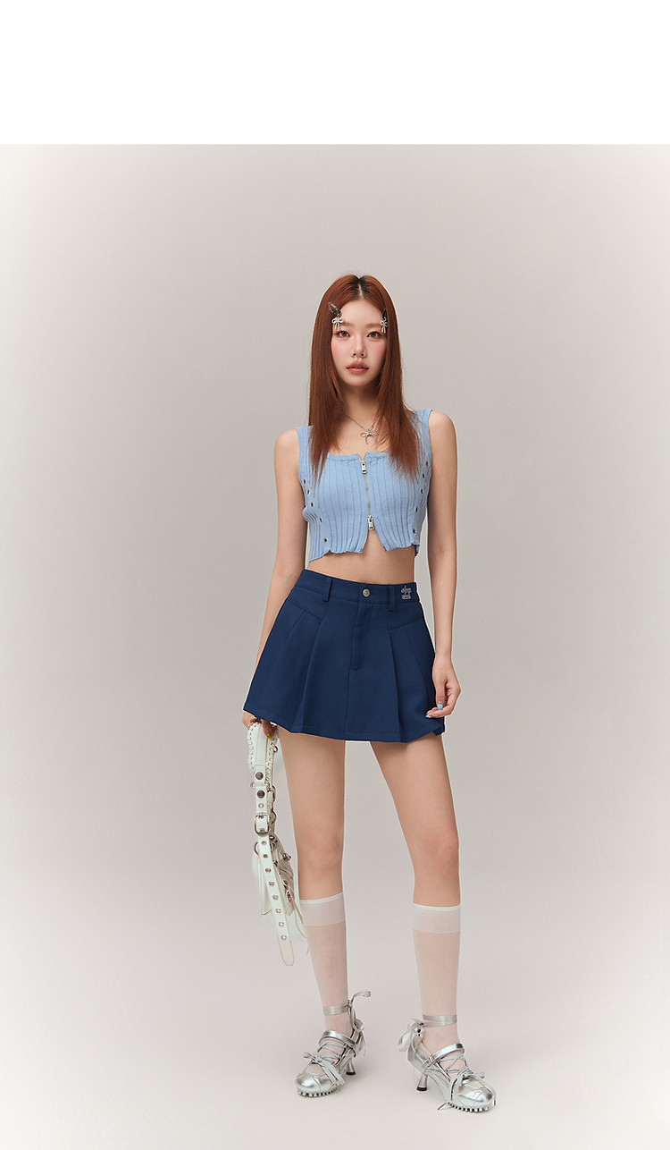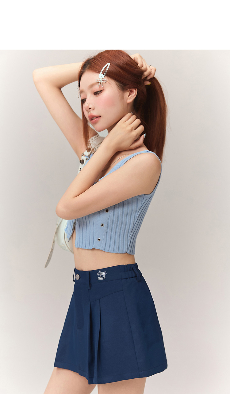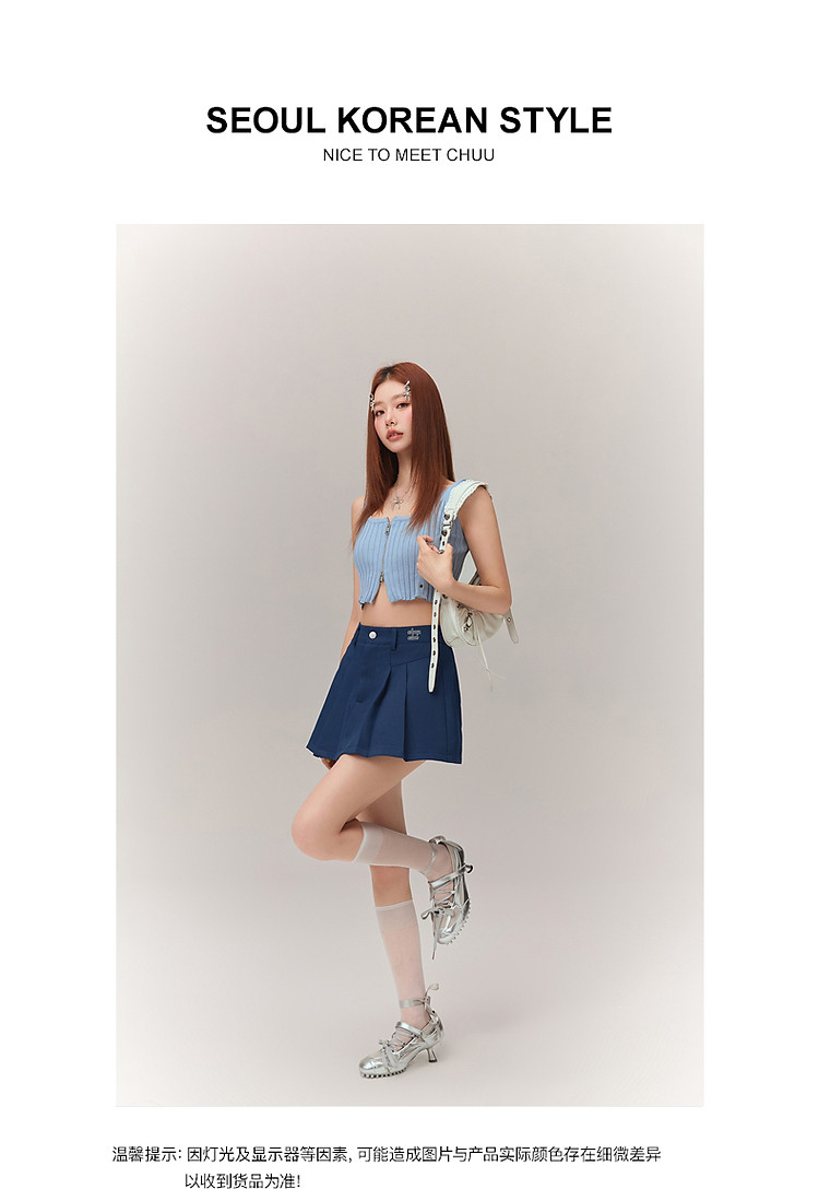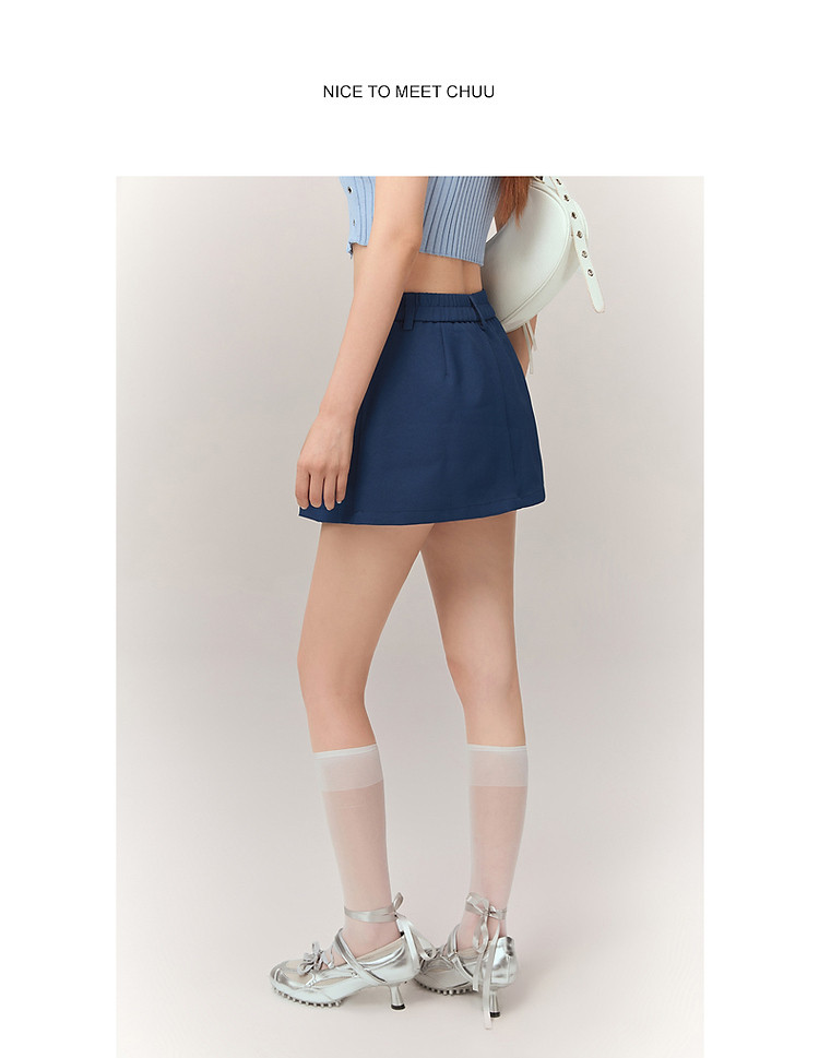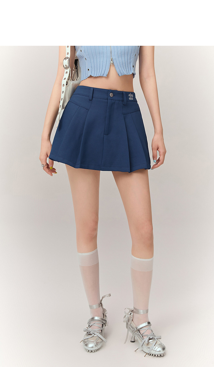 商品名称:字母刺绣半身裙女2025夏松紧腰绣花A字百褶短裙子 569363