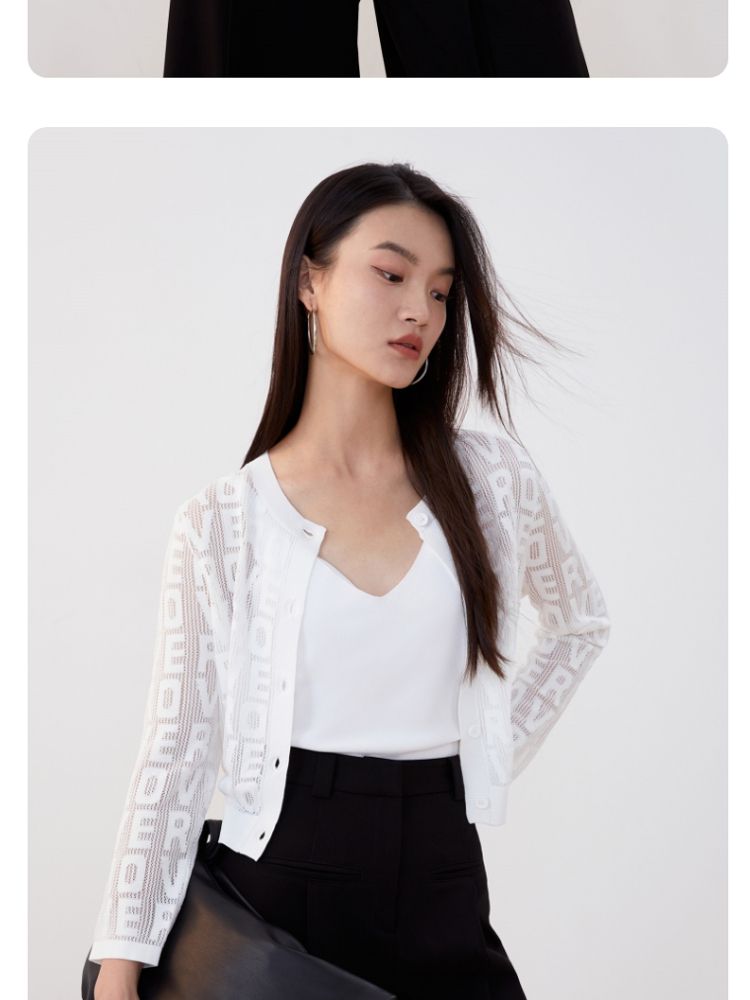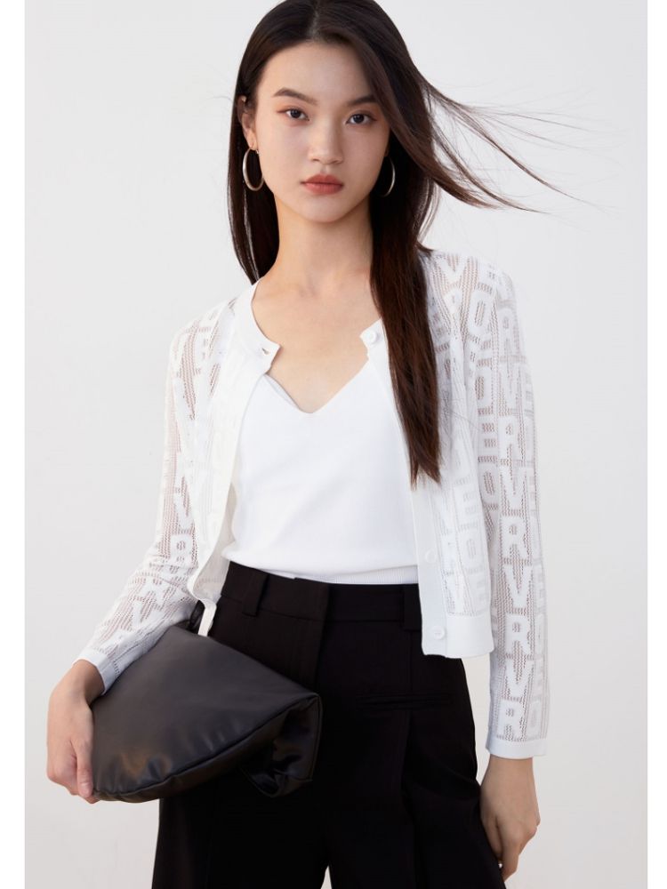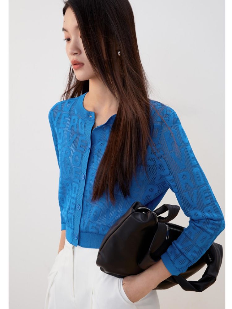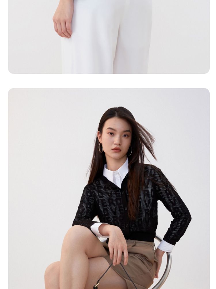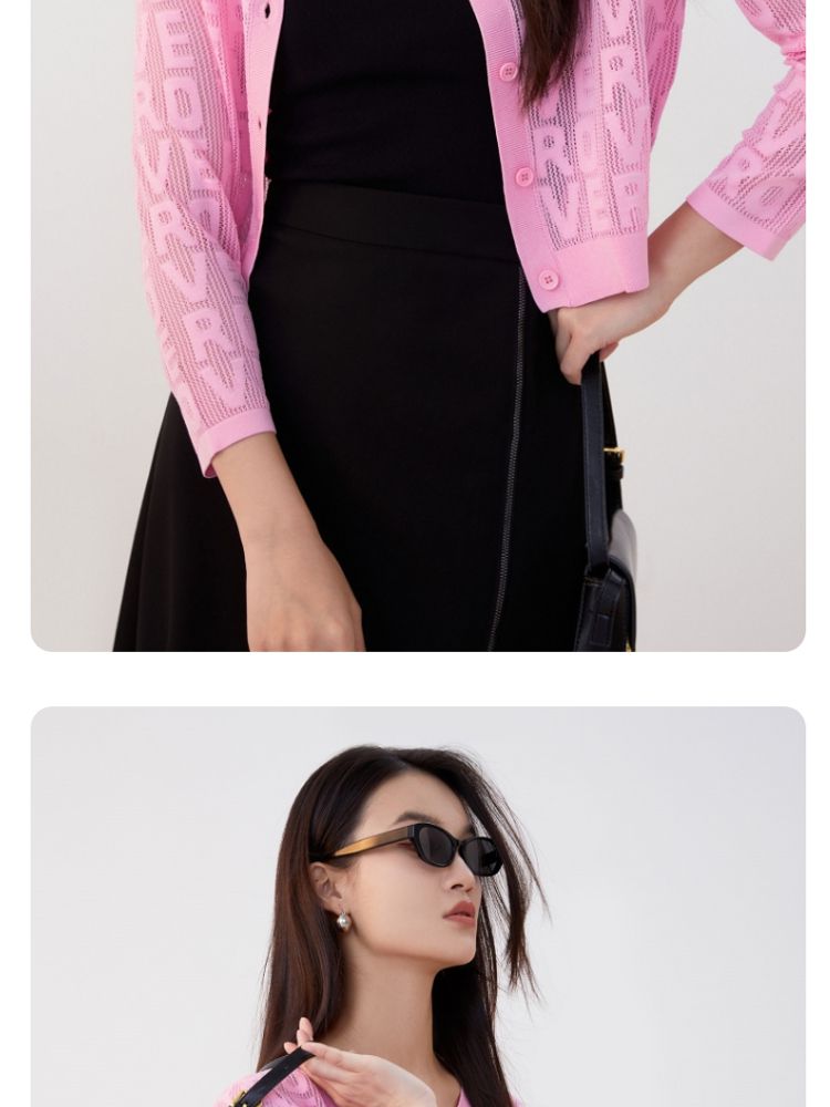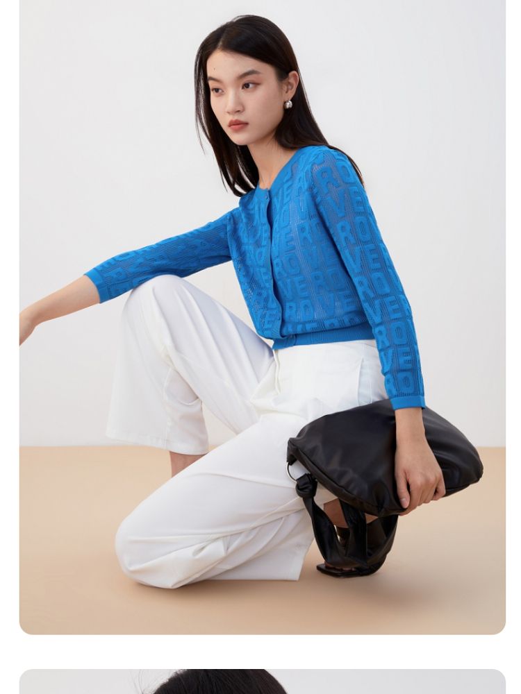 商品名称:【多巴胺减龄】春夏七分袖直筒开衫字母针织衫气质百搭时尚 750225