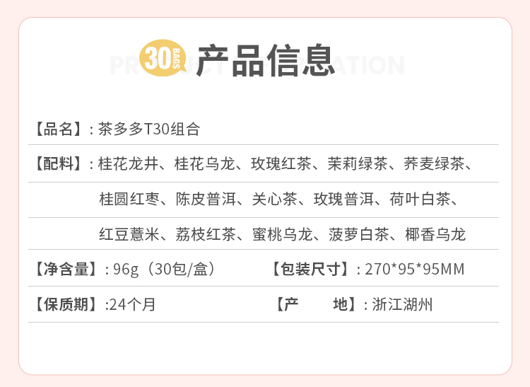 商品名称:CHALI/茶里茶多多T30花茶组合96g
