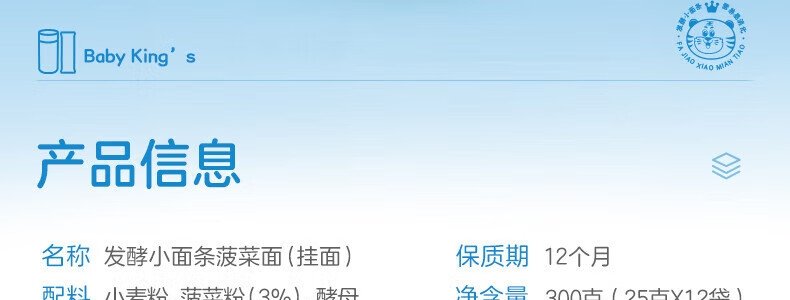 商品名称:金龙鱼 BabyKing's 发酵小面条菠菜面 300g