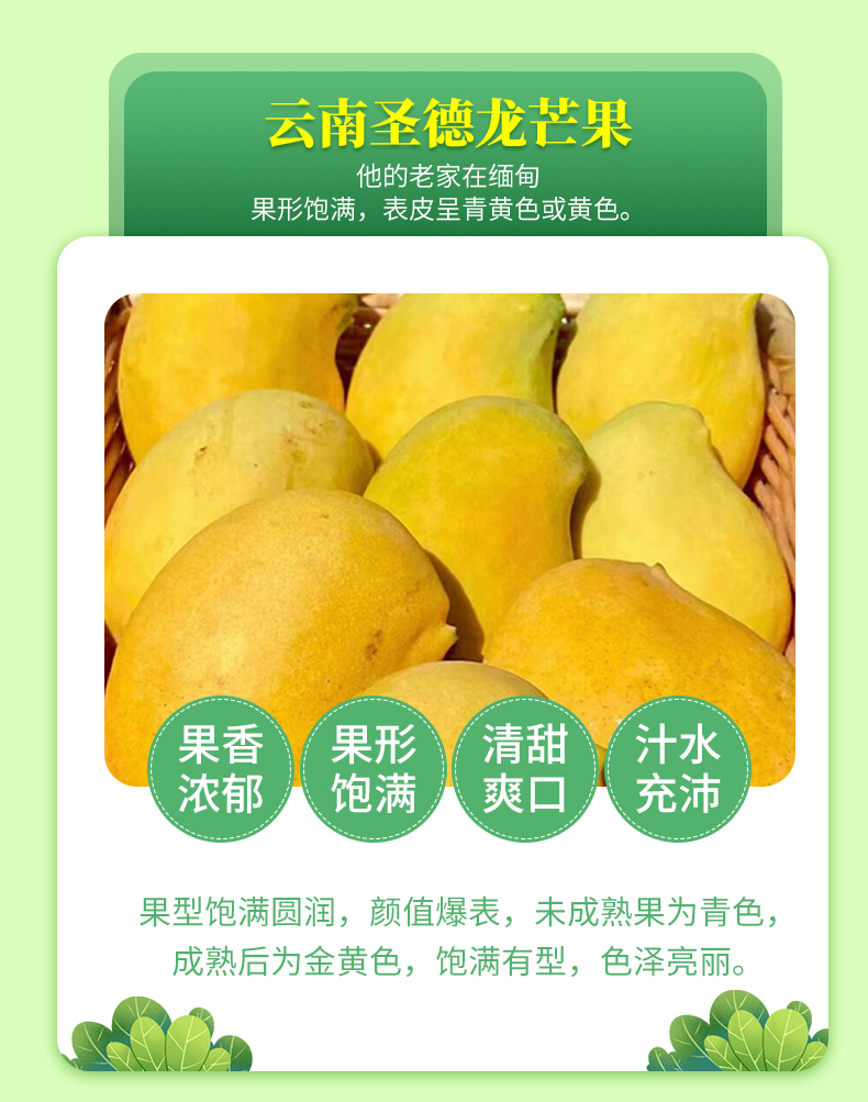 商品名称:【顺丰配送】云南嘟嘟云南圣德龙芒果 单果150-240g