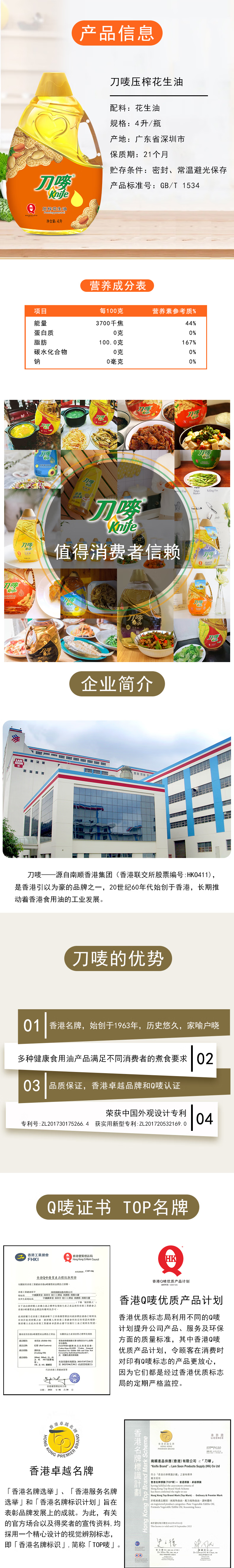 商品名称:Knife/刀唛压榨花生油4L