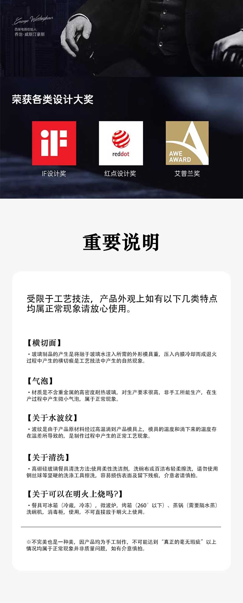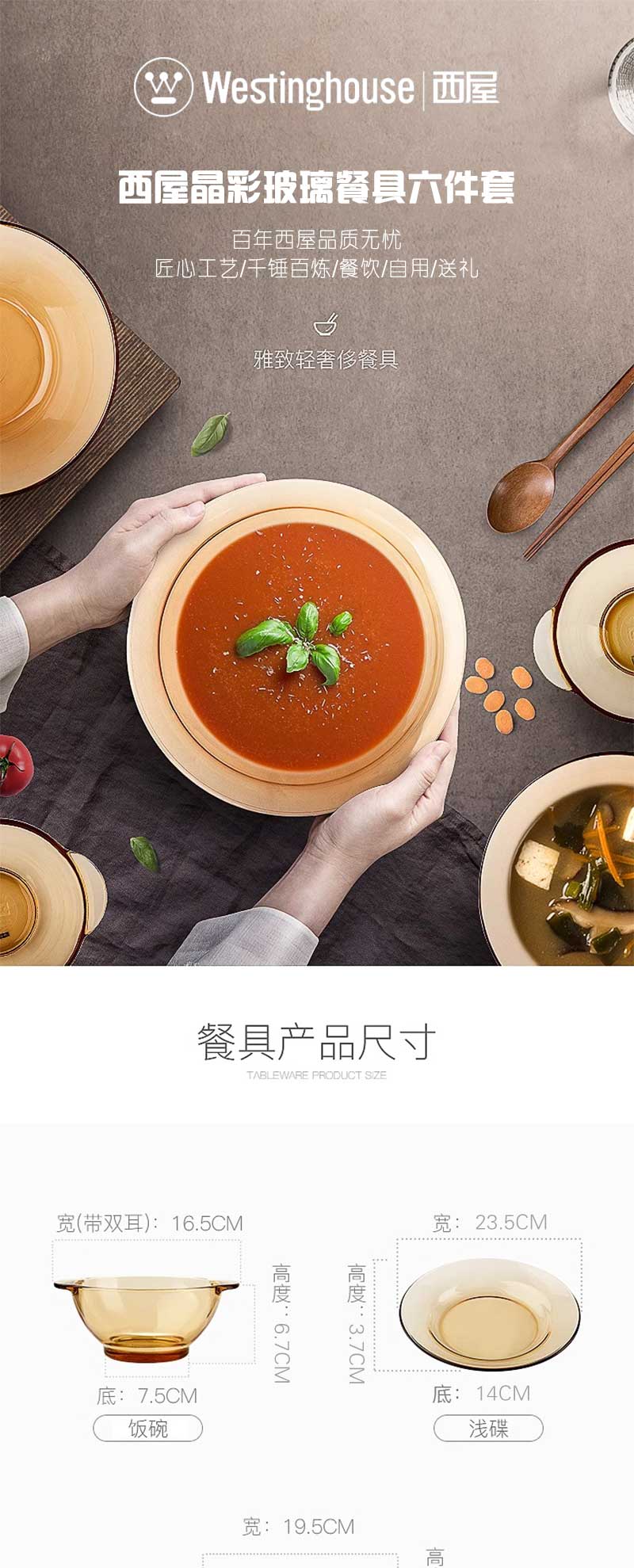 商品名称:Westinghouse/西屋晶彩玻璃餐具六件套WBL02