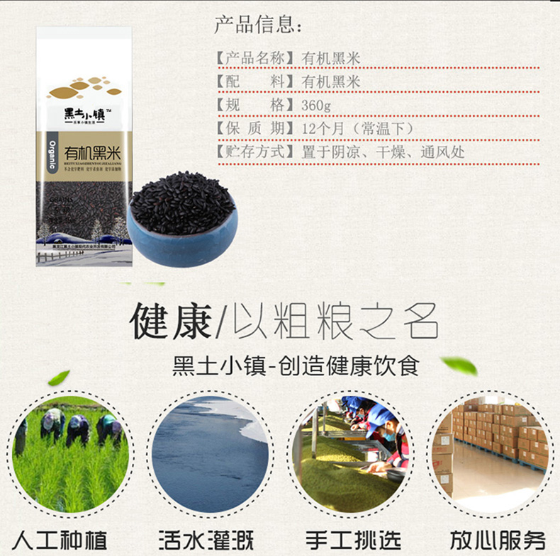商品名称:黑土小镇有机黑米360g