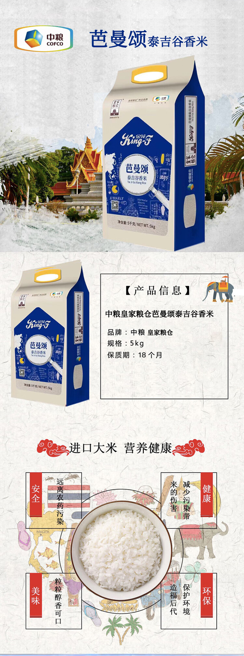 商品名称:中粮皇家粮仓芭曼颂泰吉谷香米5kg