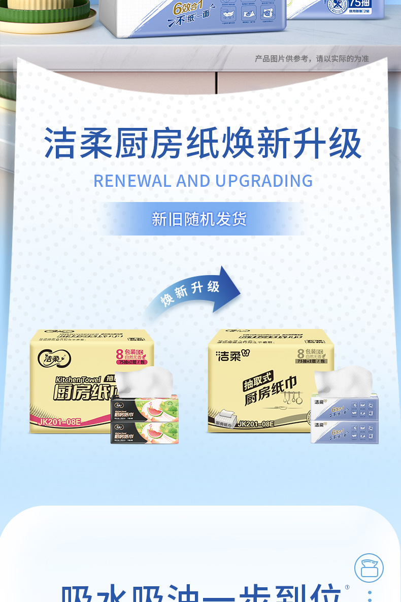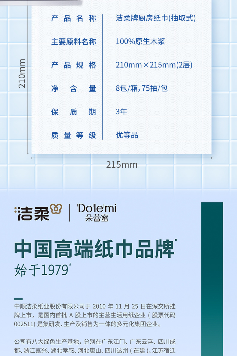 商品名称:C&S/洁柔厨房抽纸75抽*8包