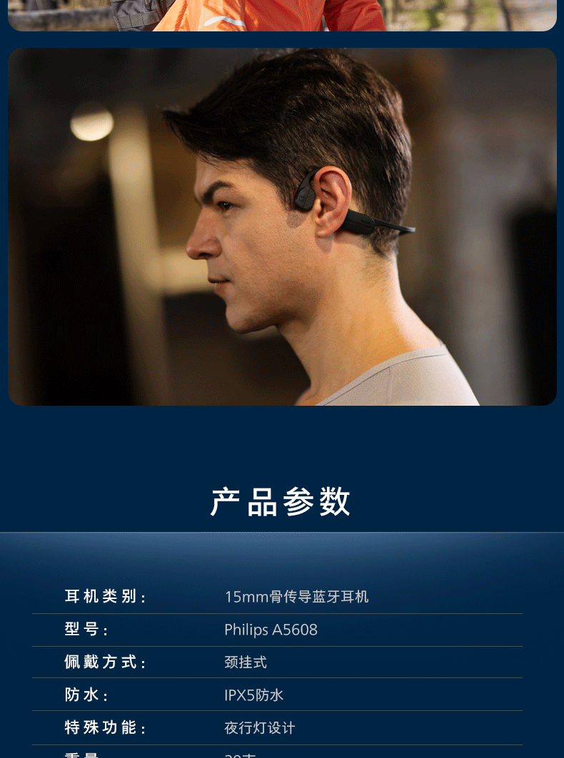 商品名称:PHILIPS/飞利浦骨传导蓝牙耳机A5608