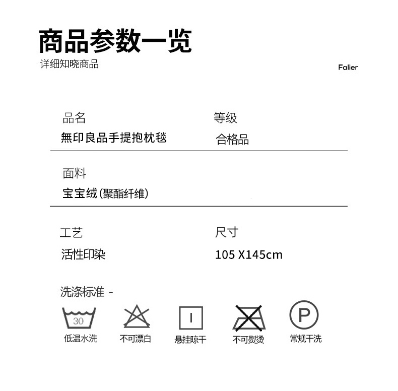 商品名称:无印良品手提抱枕毯105*145cm 560g