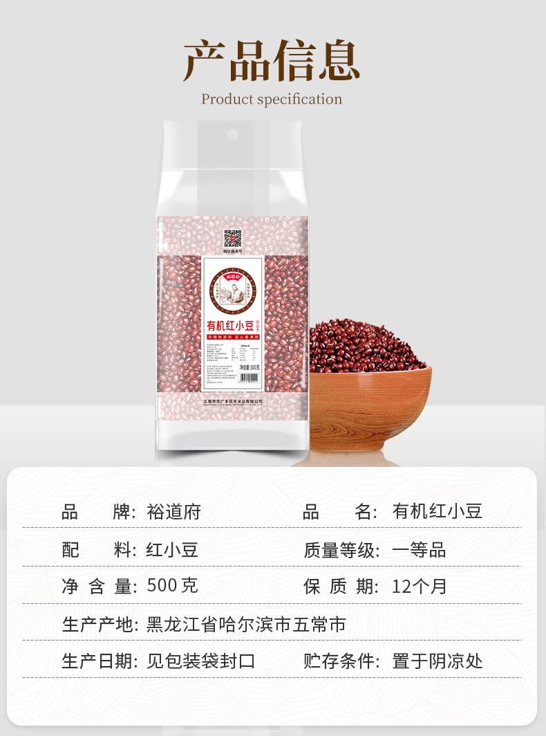 商品名称:裕道府有机红小豆500g