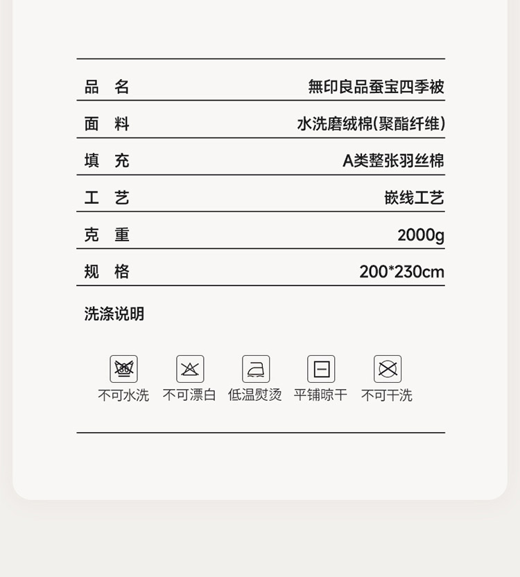 商品名称:无印良品蚕宝四季被200*230cm 2000g