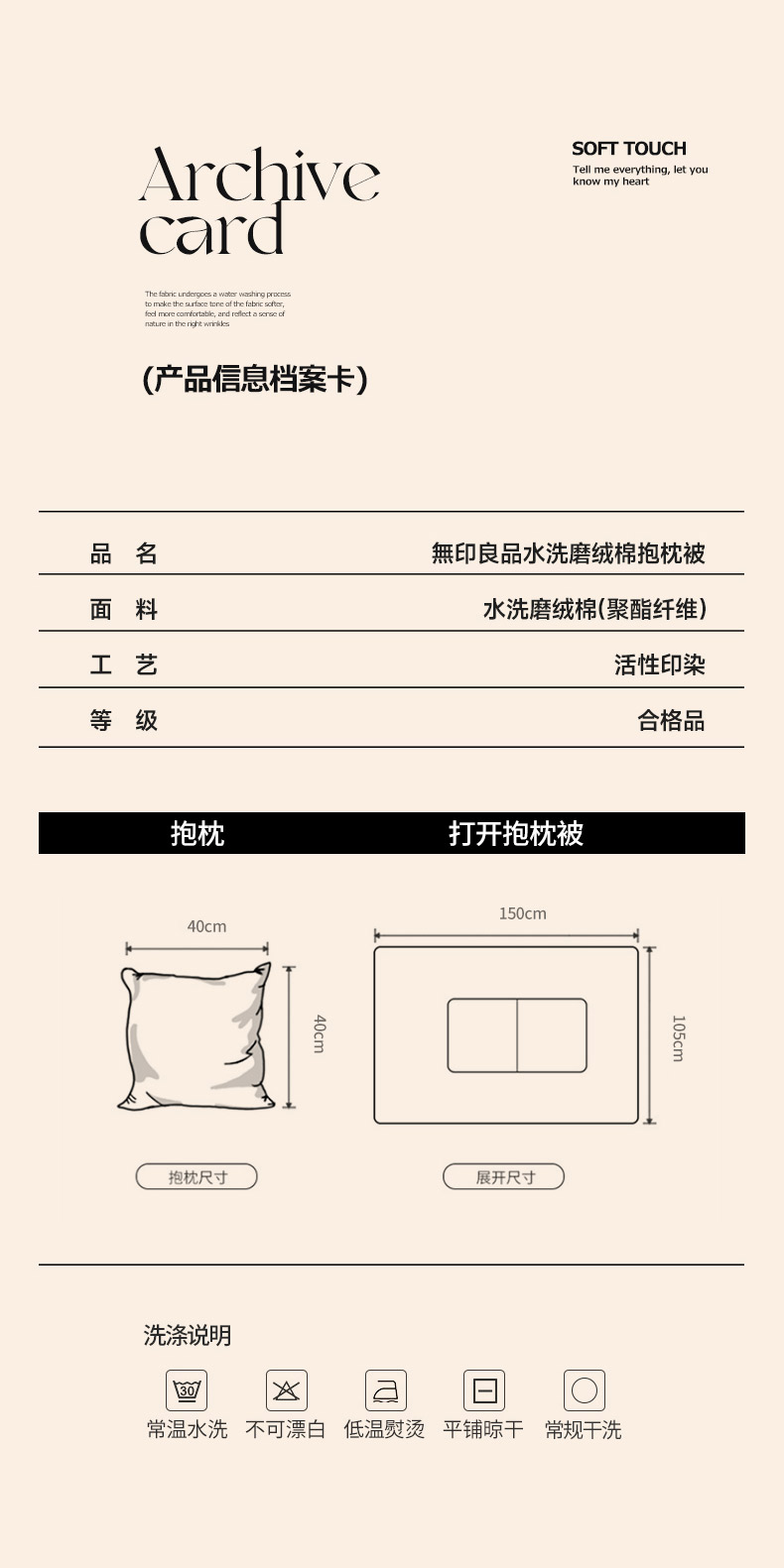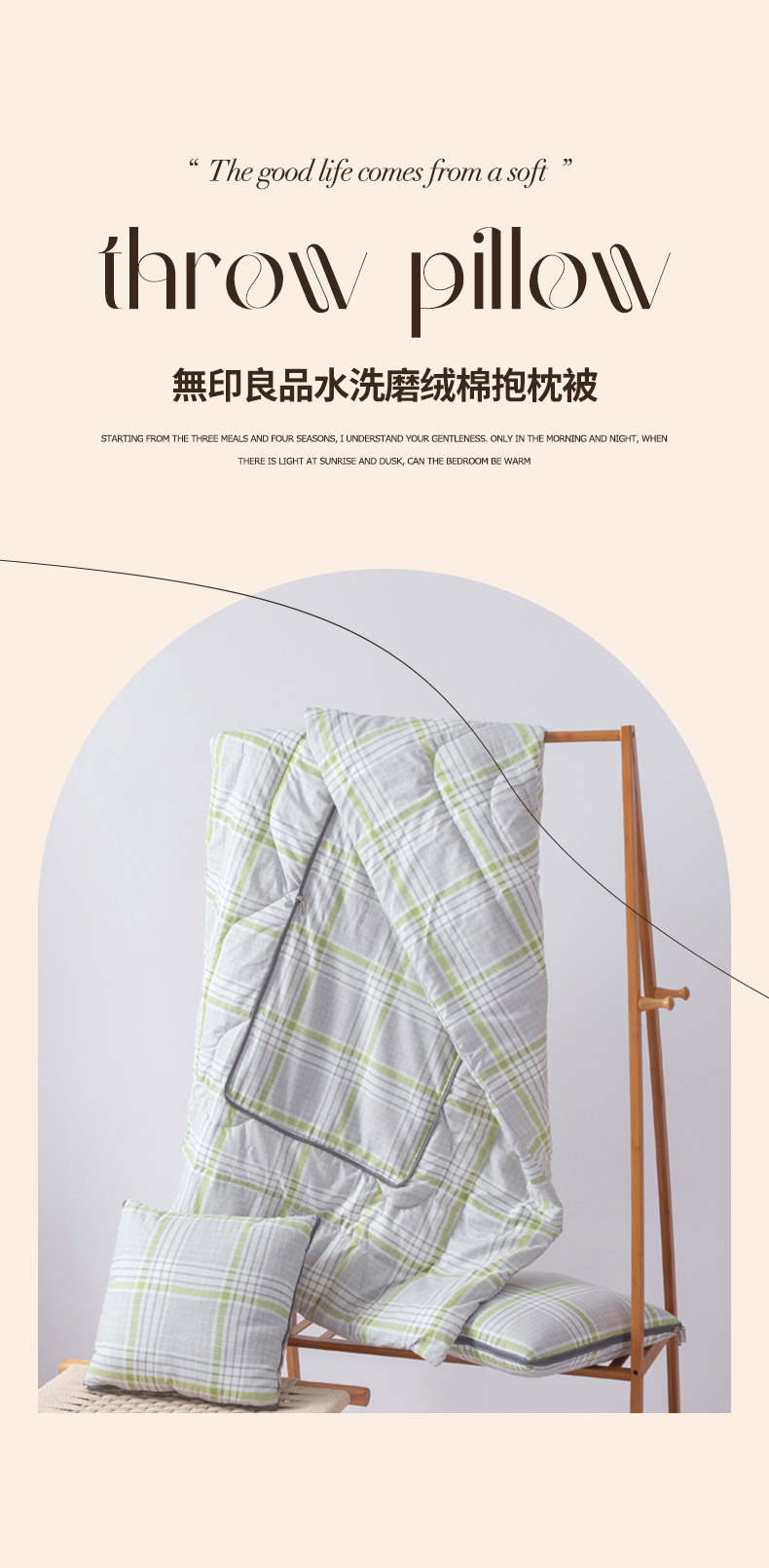 商品名称:无印良品水洗磨绒棉抱枕被105*150cm 500g