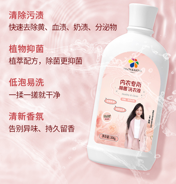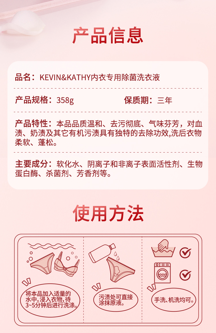 商品名称:KEVIN&KATHY/凯文凯茜玫瑰香氛洁净内衣专用洗衣液358g