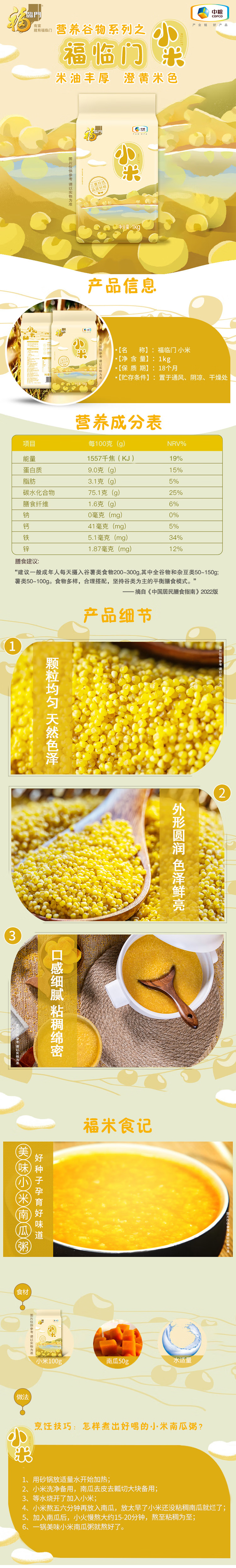 商品名称:中粮福临门小米1kg