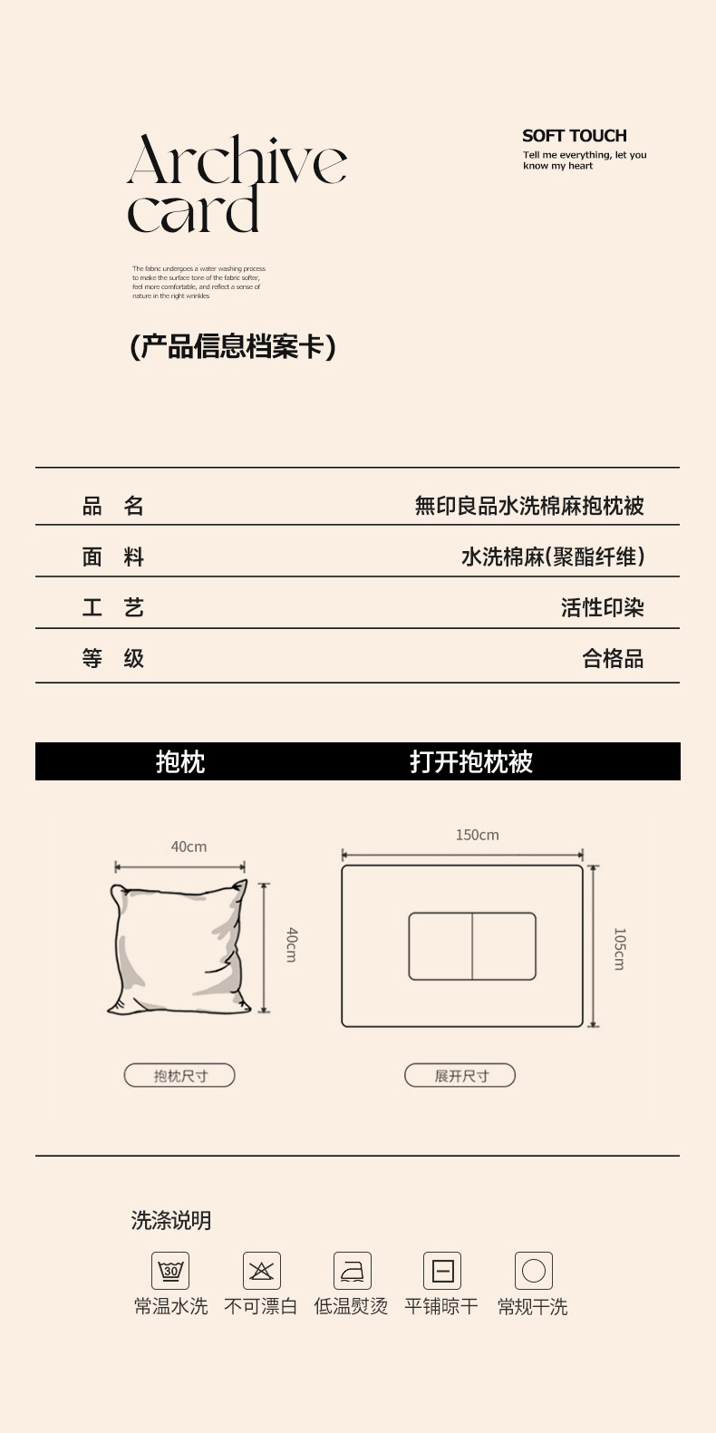 商品名称:无印良品水洗棉麻抱枕被105*150cm 600g