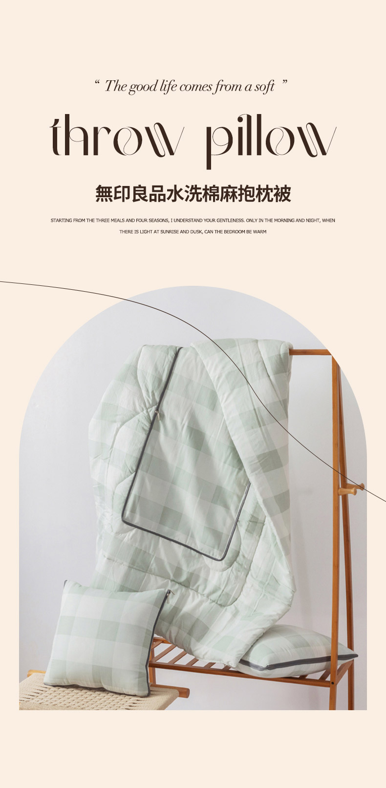 无印良品水洗棉麻抱枕被105*150cm 600g