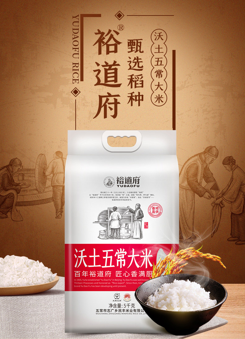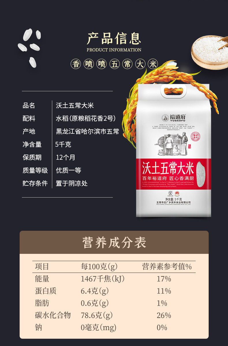 商品名称:裕道府沃土五常稻花香2号大米5kg