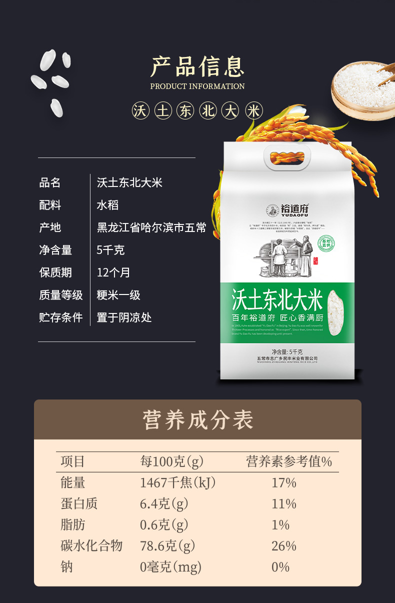 商品名称:裕道府沃土东北大米5kg