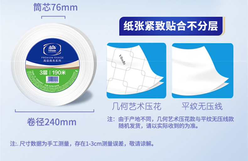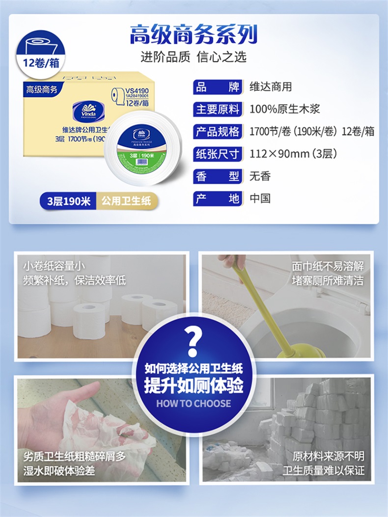 商品名称:Vinda/维达商用大盘纸3层190m*12卷