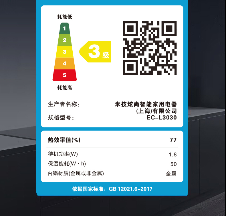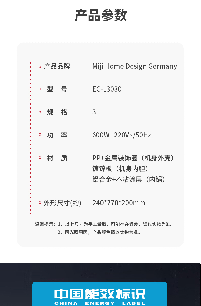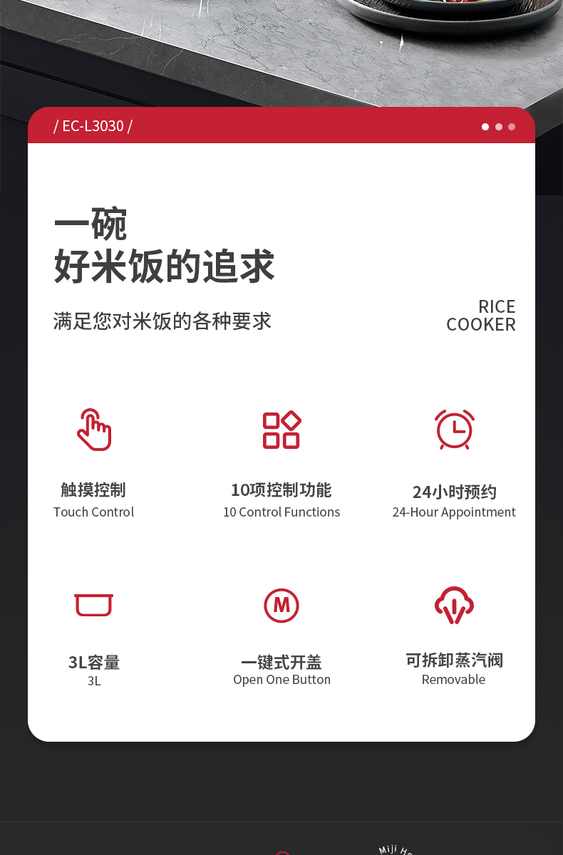 商品名称:Miji/米技3升微电脑电饭煲EC-L3030
