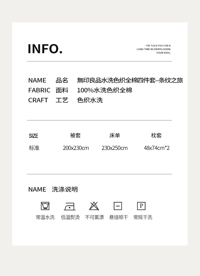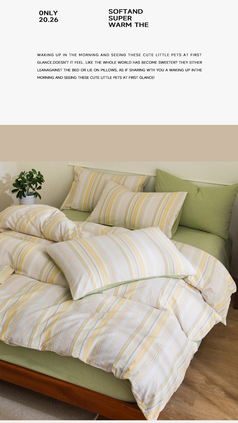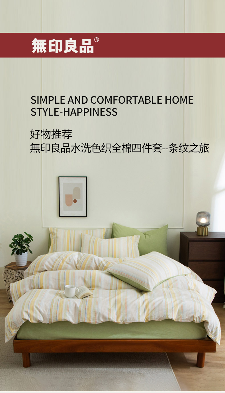商品名称:无印良品条纹之旅水洗色织全棉床品四件套200*230cm