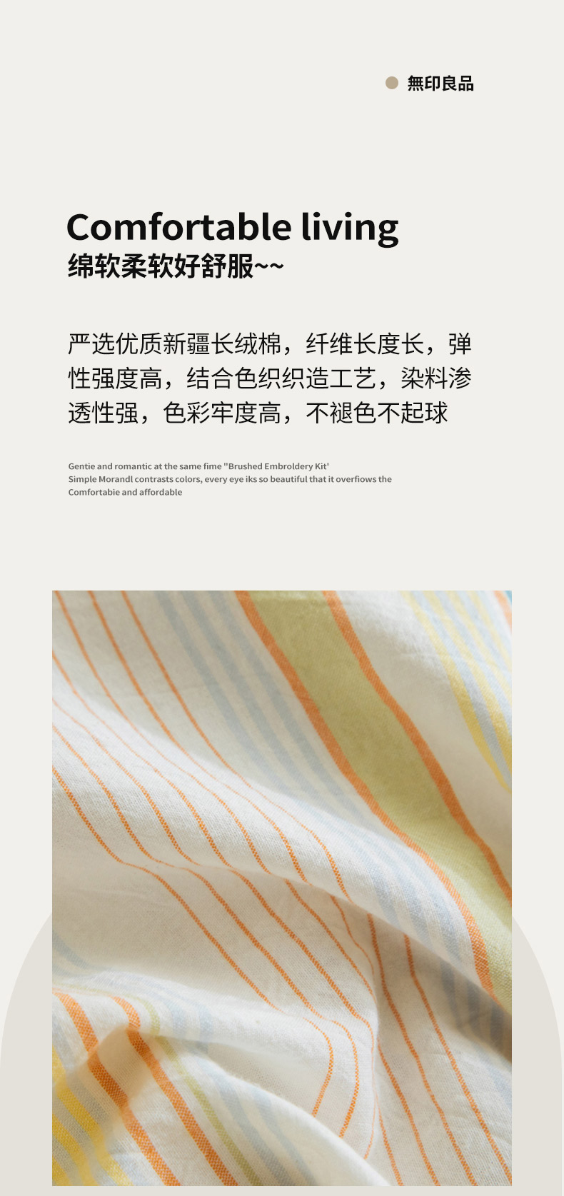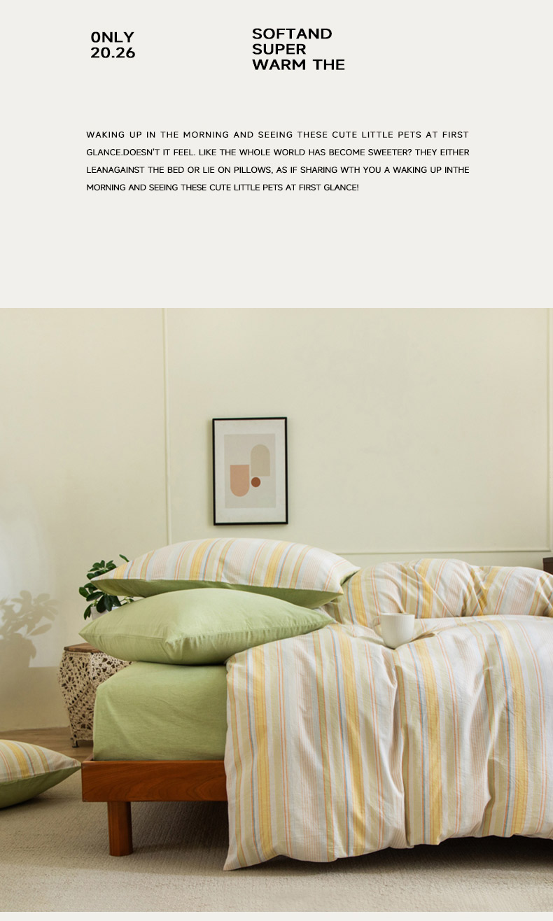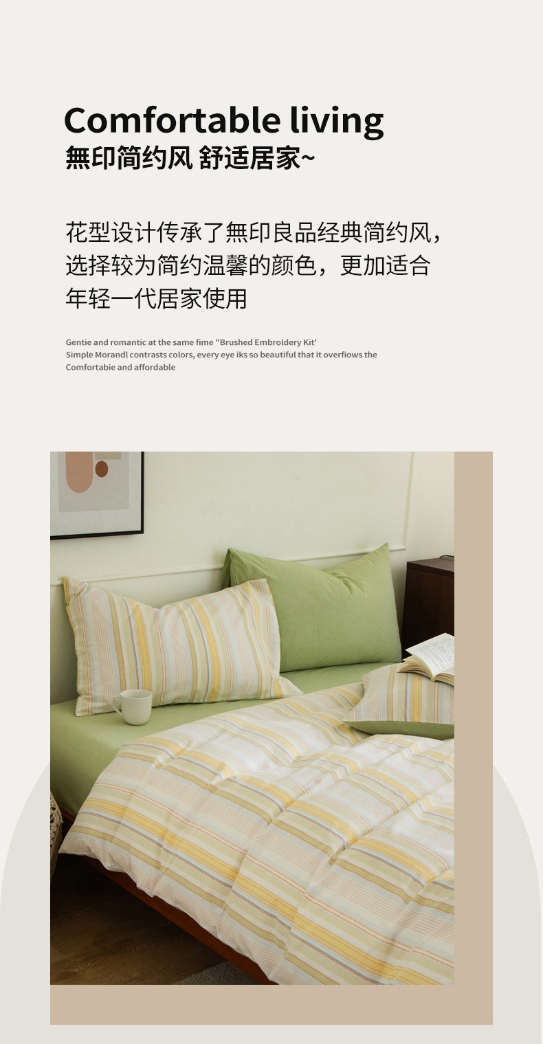 商品名称:无印良品条纹之旅水洗色织全棉床品四件套200*230cm