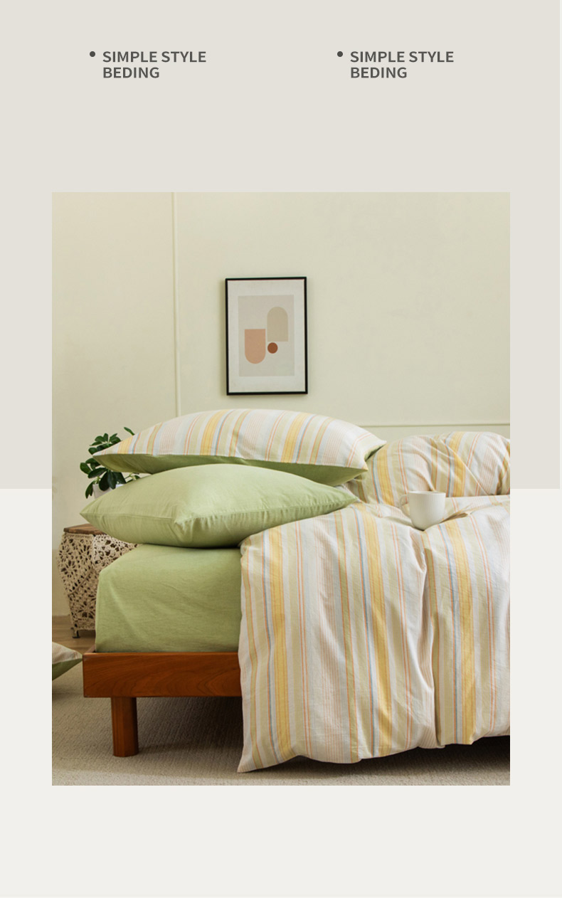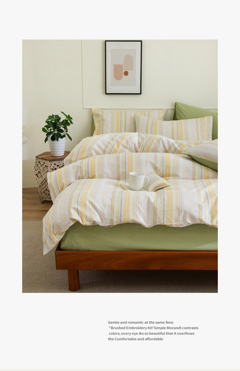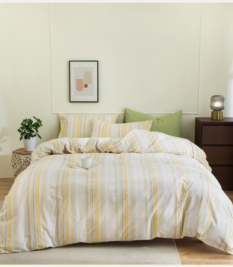 无印良品条纹之旅水洗色织全棉床品四件套200*230cm