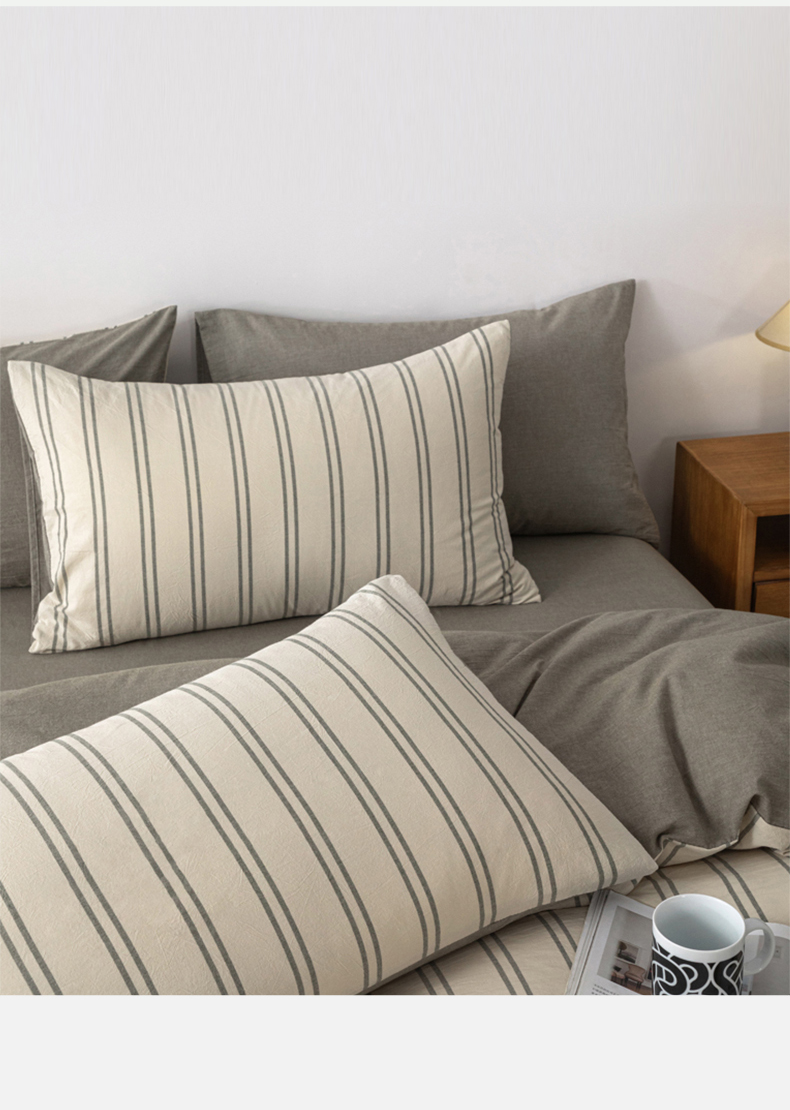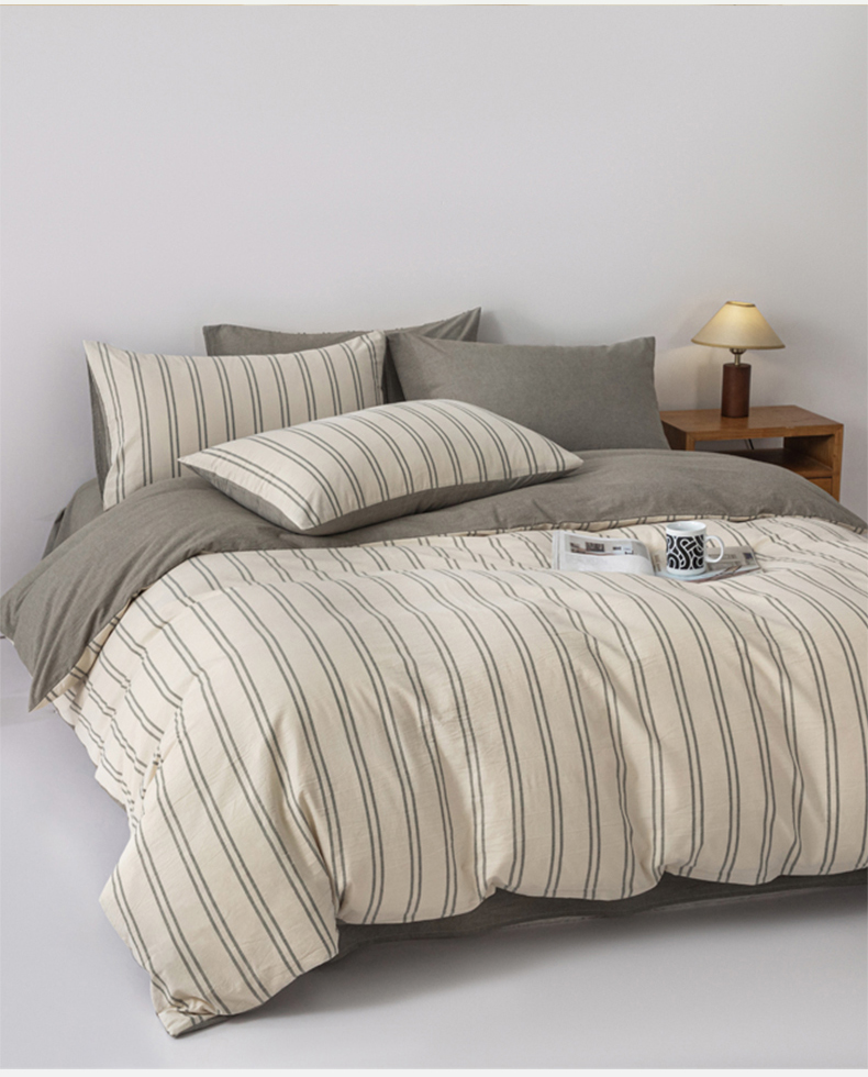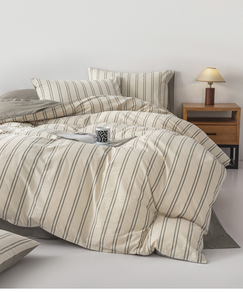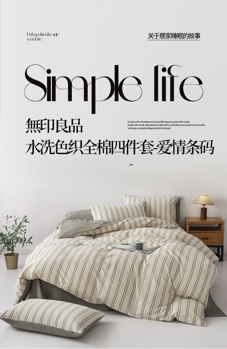 无印良品爱情条码水洗色织全棉床品四件套200*230cm