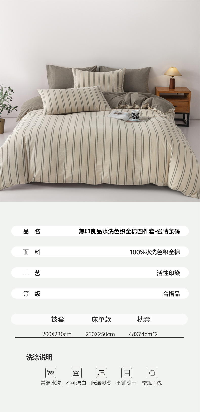 商品名称:无印良品爱情条码水洗色织全棉床品四件套200*230cm