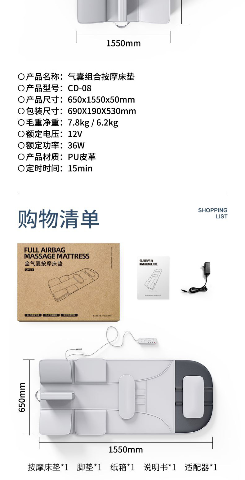 商品名称:潮友气囊组合按摩床垫CY-CD-08
