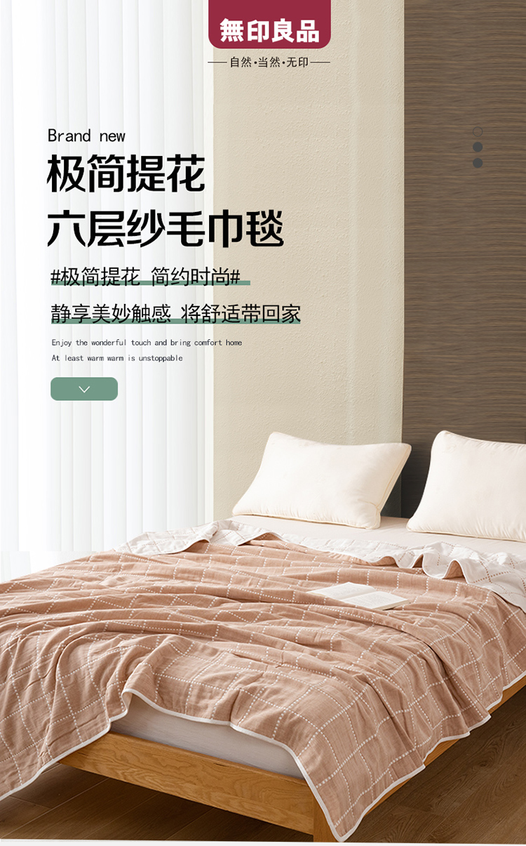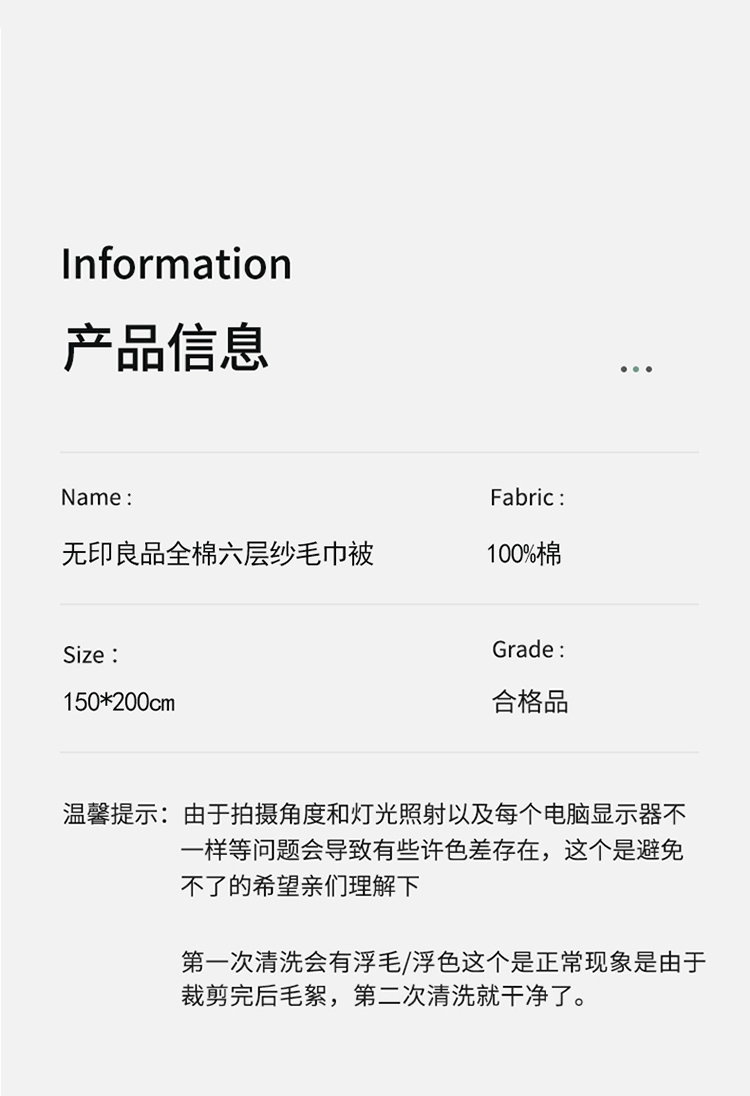 商品名称:无印良品全棉六层纱毛巾被150*200cm 1000g