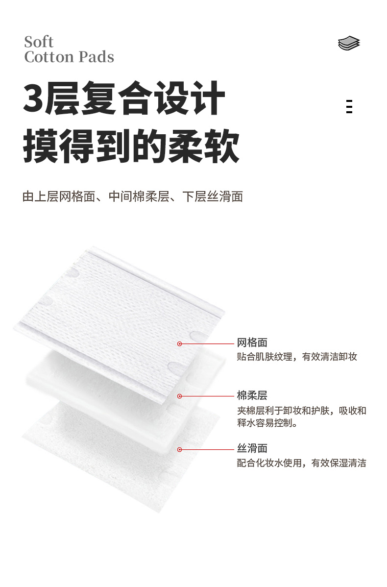 贝丽亚加厚款双面双效净肤化妆棉150片*3盒