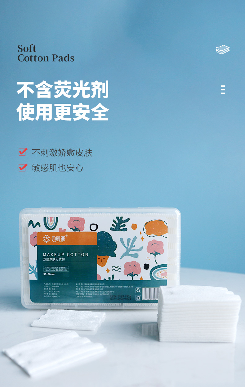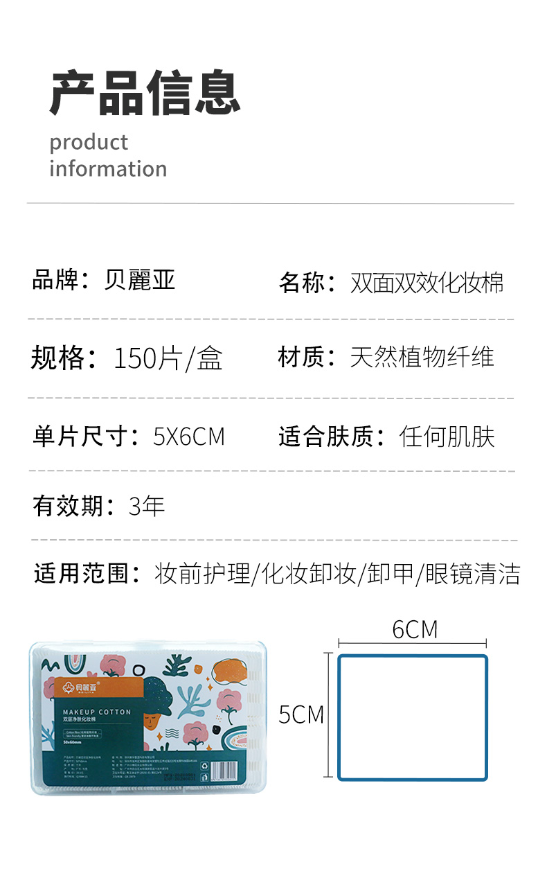 商品名称:贝丽亚加厚款双面双效净肤化妆棉150片*3盒